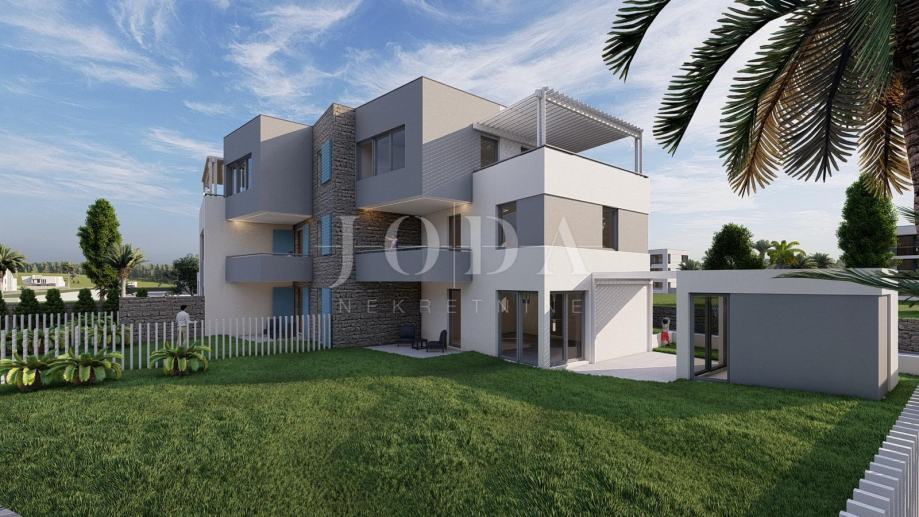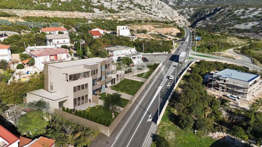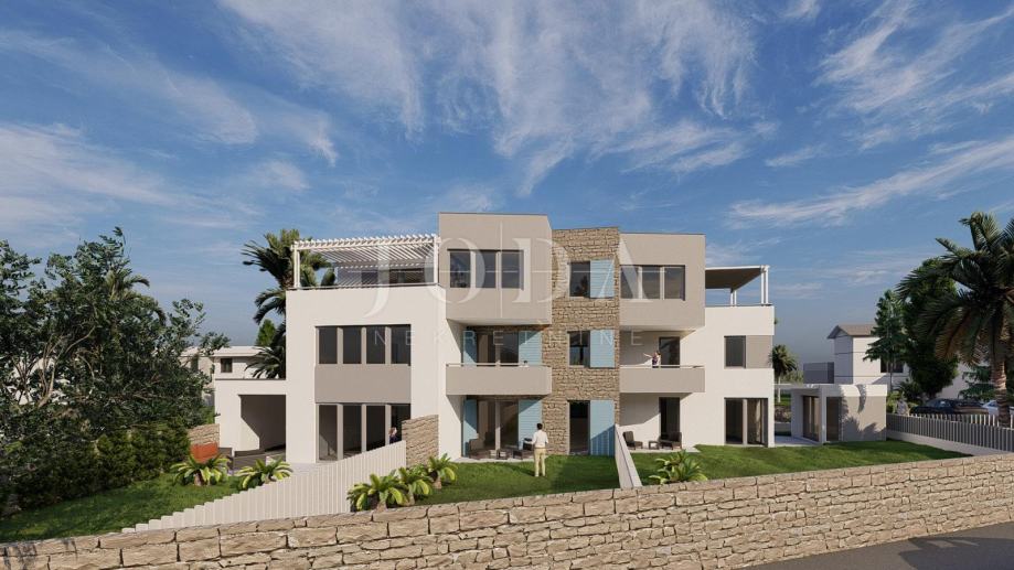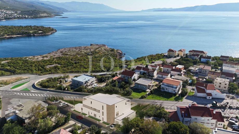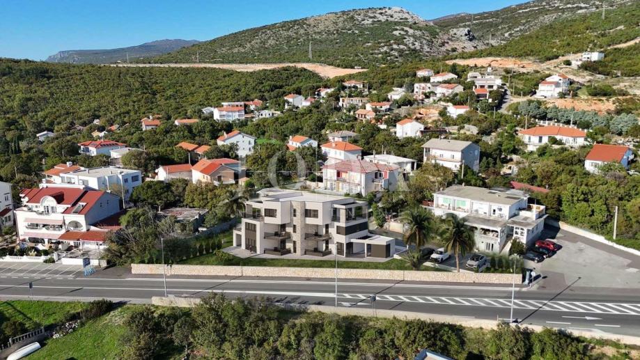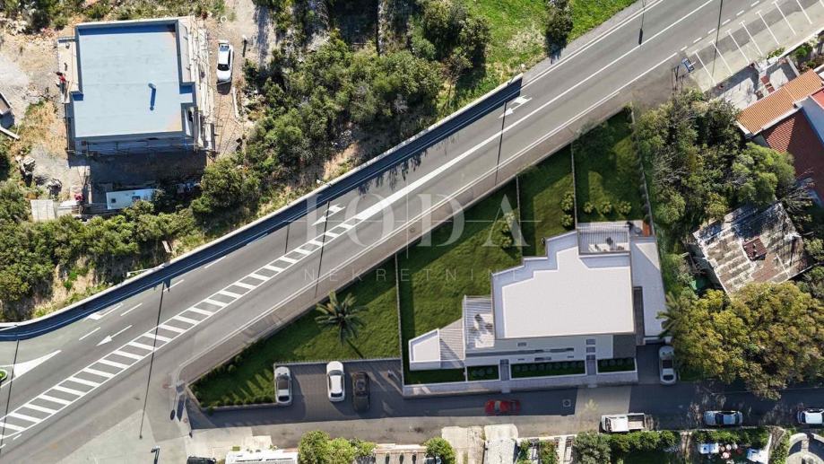 Povišena od glavne ceste,zgrada pruža pogled na more već sa prizemlja.Svi stanovi imaju u vlasništvu parkirno mjesto te je mogućnost kupnje garaže.