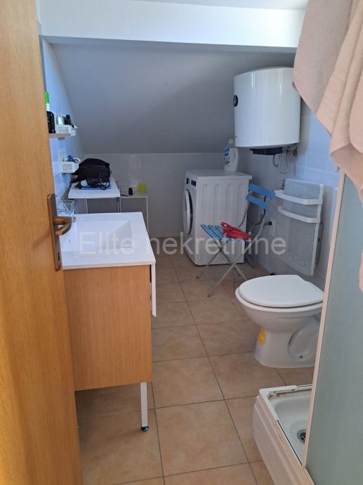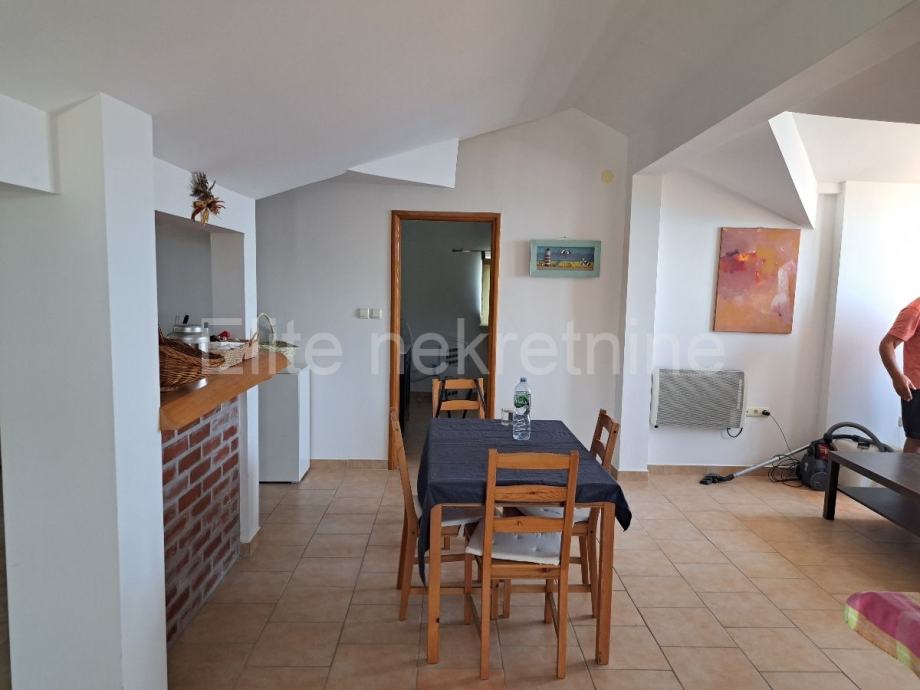 Prodaje se stan nedaleko od Novog Vinodolskog u Povilama u visokom potkrovlju uredne i novije zgrade. Sastoji se od stubišta, predprostora, dnevnog boravka, kuhinje, kupatila, dvije spavaće sobe, terase i dva spremišta. Prodaje se kompletno namješten. Svjetao je i održavan.