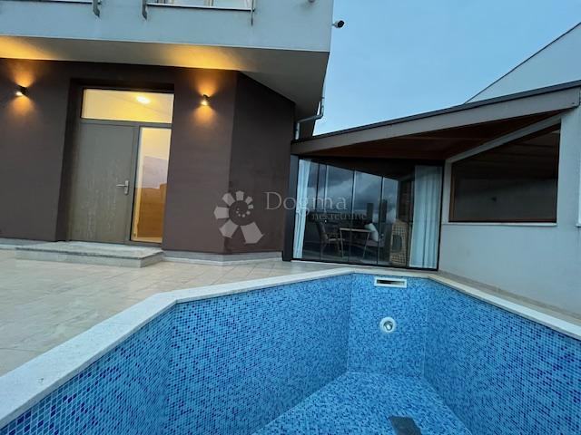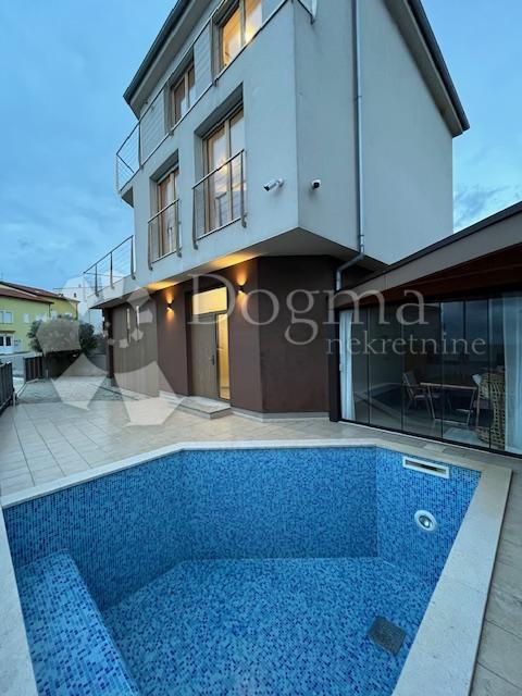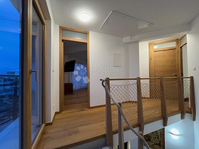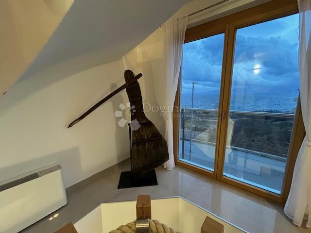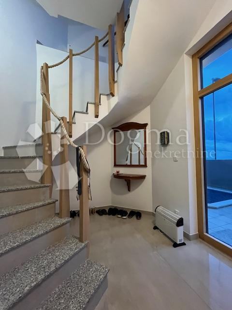 Sastoji se od prizemlja i dva kata.U prizemlju se nalazi ulazni hodnik,velika garaža opremljena punjačem za elektro vozila,te ljetna kuhinja sa blagovaonom sa izlazom na grijani bazen.Na prvom katu se nalazi kuhinja sa blagovaonom,spavaća soba sa kupaonom te lijepa terasa sa koje možete uživati u pogledu na more.