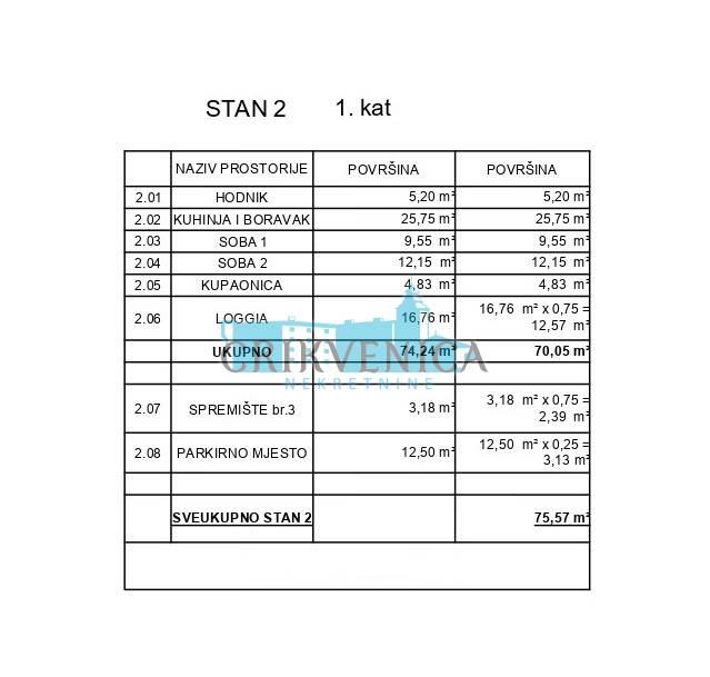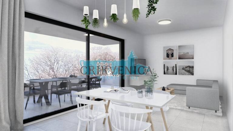 U ponudi je stan na 1.katu kvalitetne novogradnje u Povilama, 50 m od mora! Stan se sastoji od dnevnog boravka sa kuhinjom, 2 spavaće sobe, kupaonice i prostrane loggie sa pogledom na more.