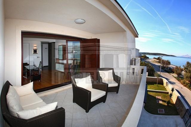 Moderna luksuzna vila, uz samo more. Radi se o samostojećem objektu kvalitetne gradnje, iznimne opremljenosti i sadržajem. Koncepcije je na tri etaže sa podrumskim dijelom.Podrumski dio je garaža za 6 automobila, sprema i teretana, prizemlje su dva dvosobna apartmana.Kat je dvosoban stan sa dva kupatila, dva balkona, terasa, kuhinja, blagavaonica, dnevna soba,radna soba. Potkrovlje je biljar sala sa kupatilom.Villa ima uredjen i kultiviran vrt. Prekrasan pogled na Splitsku i Makarsku rivijeru.