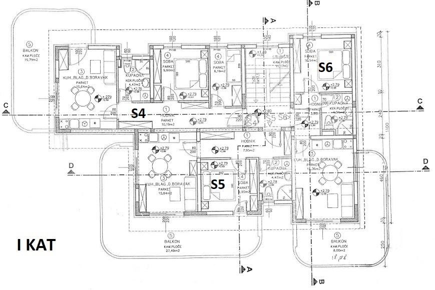 Prodaje se trosobni apartman (S4) ukupne obračunske površine 58,54 m2 na I katu novogradnje u Povljani na Pagu.