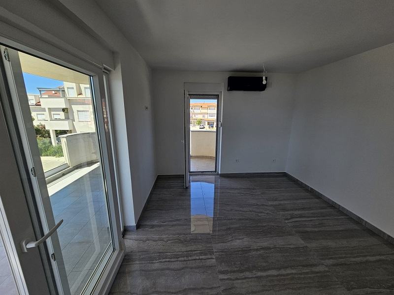 Sastoji se od hodnika, kupaonice, dnevnog boravka s kuhinjom i blagovaonom, 2 sobe i velike terase površine 20 m2.