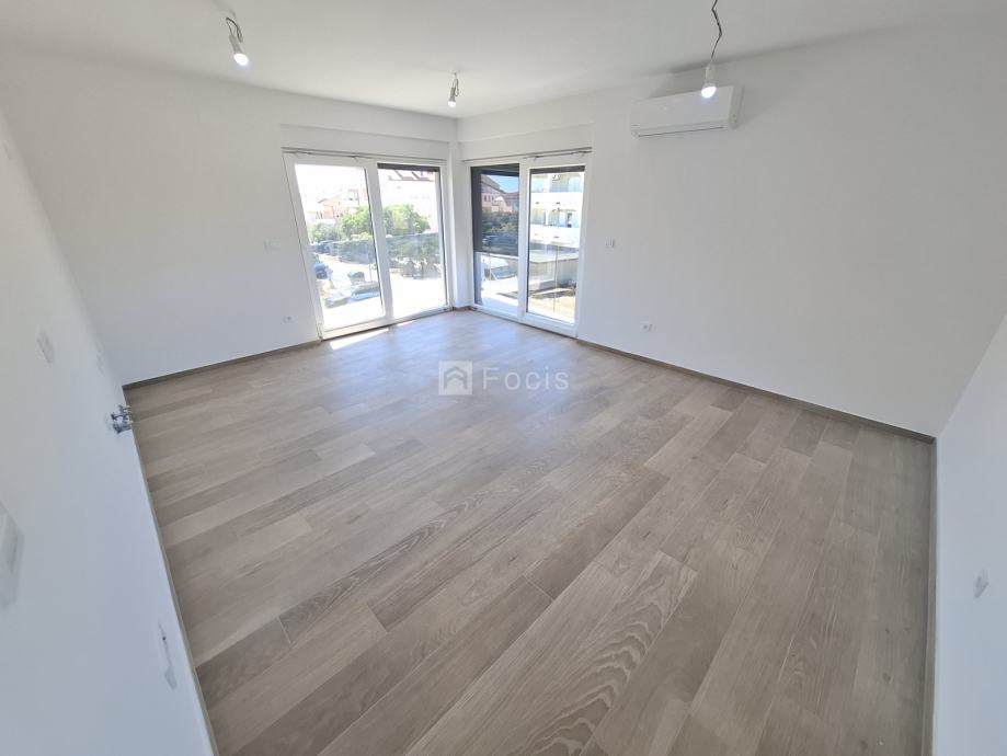 Stan se sastoji od hodnika, dvije spavaće sobe, kupaonice, kuhinje s blagovaonicom i dnevnim boravkom i natkrivene terase.