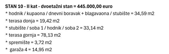 Prodaje se trosobni, dvoetažni apartman (S10) na II i III katu nove apartmanske zgrade s liftom u Povljani na otoku Pagu.