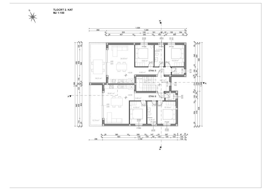 Prodaje se trosobni Penthouse apartman s predivnim pogledom, oznake S6 u tlocrtu smeđe obojano, neto obračunske površine 67,37 m2 (bruto površine 83,49 m2) na 2. katu vrhunske novogradnje sa samo šest apartmana, blizu plaže Sv. Nikola u Povljani na otoku Pagu.
