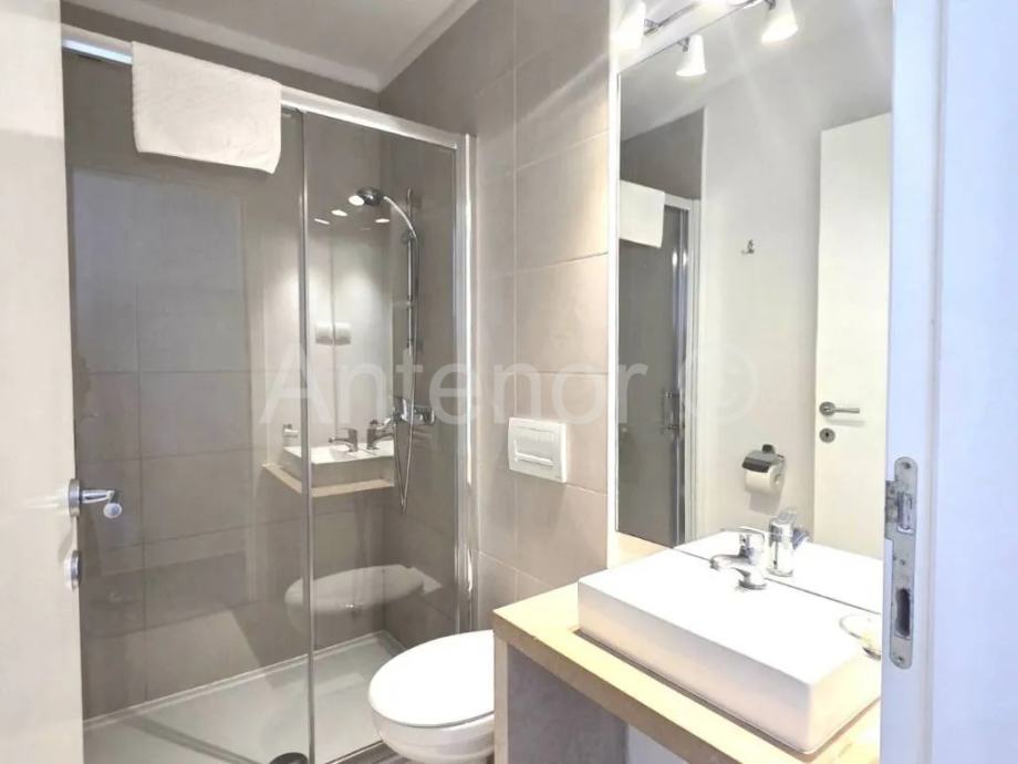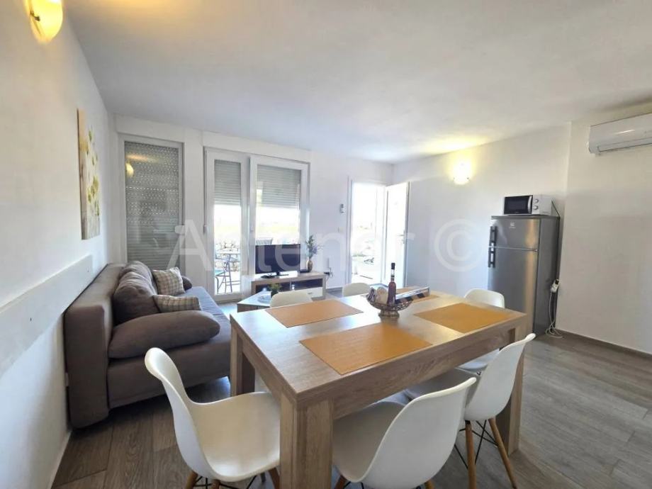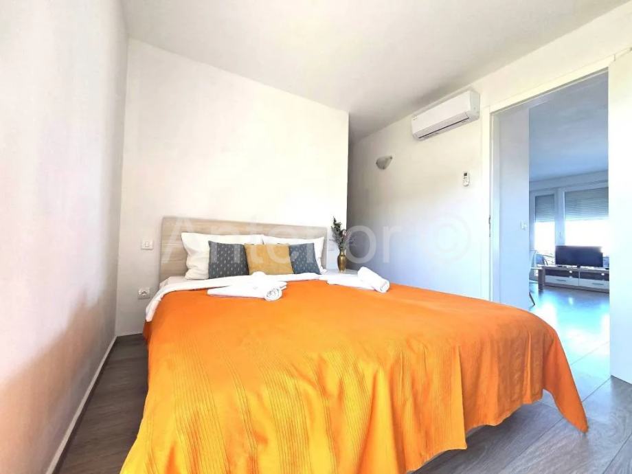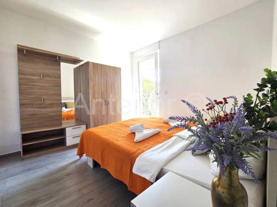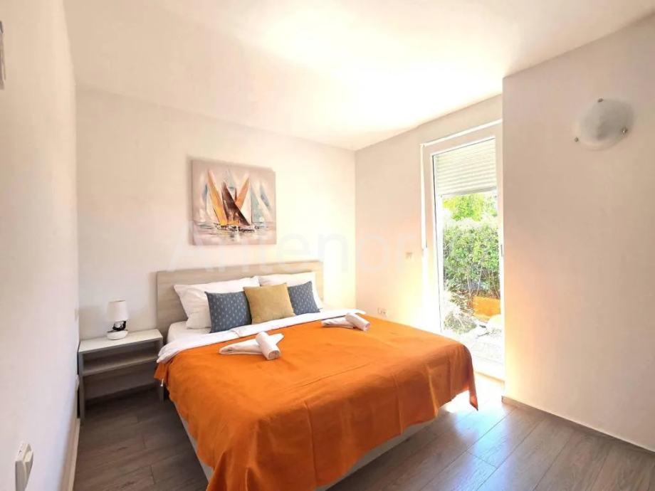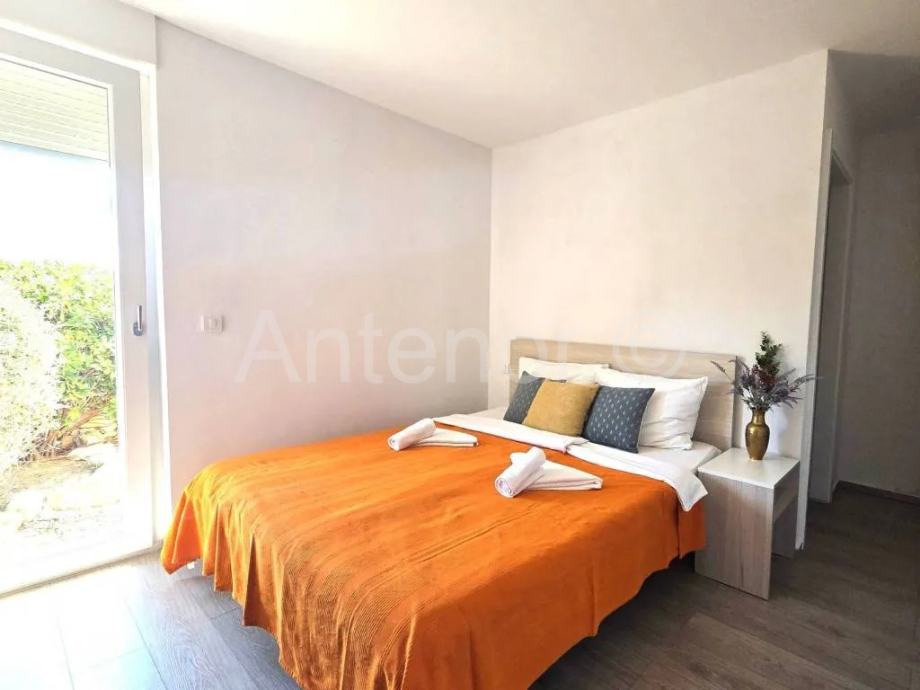 Stan se sastoji od dvije spavaće sobe, dvije kupaonice, dnevnog boravka, prostrane terase i vrta. Stanu pripada parkirno mjesto i pravo korištenja zajedničkog bazena, zone za roštiljanje i dječjeg igrališta. Stan je namješten.