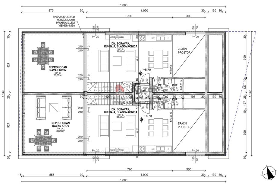 i nenatkrivene terase 30,20m2.