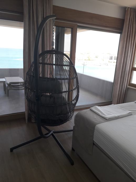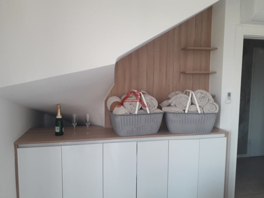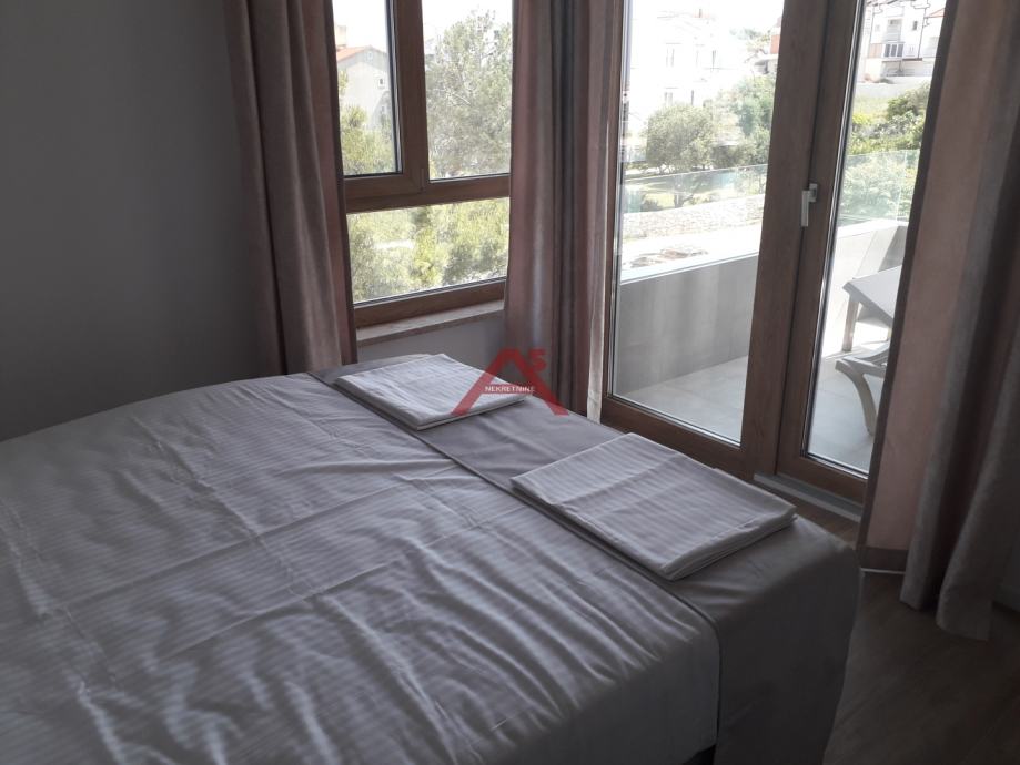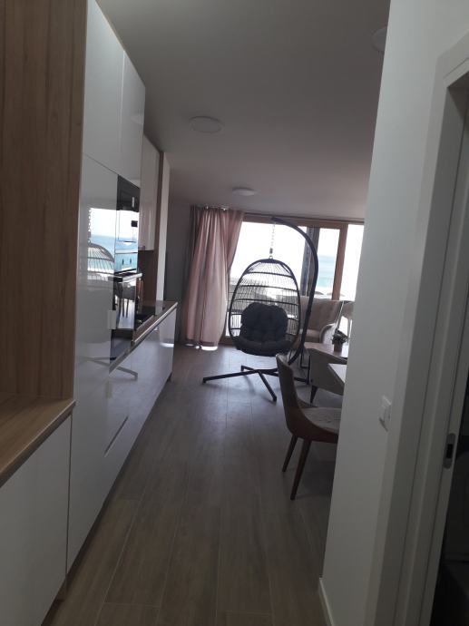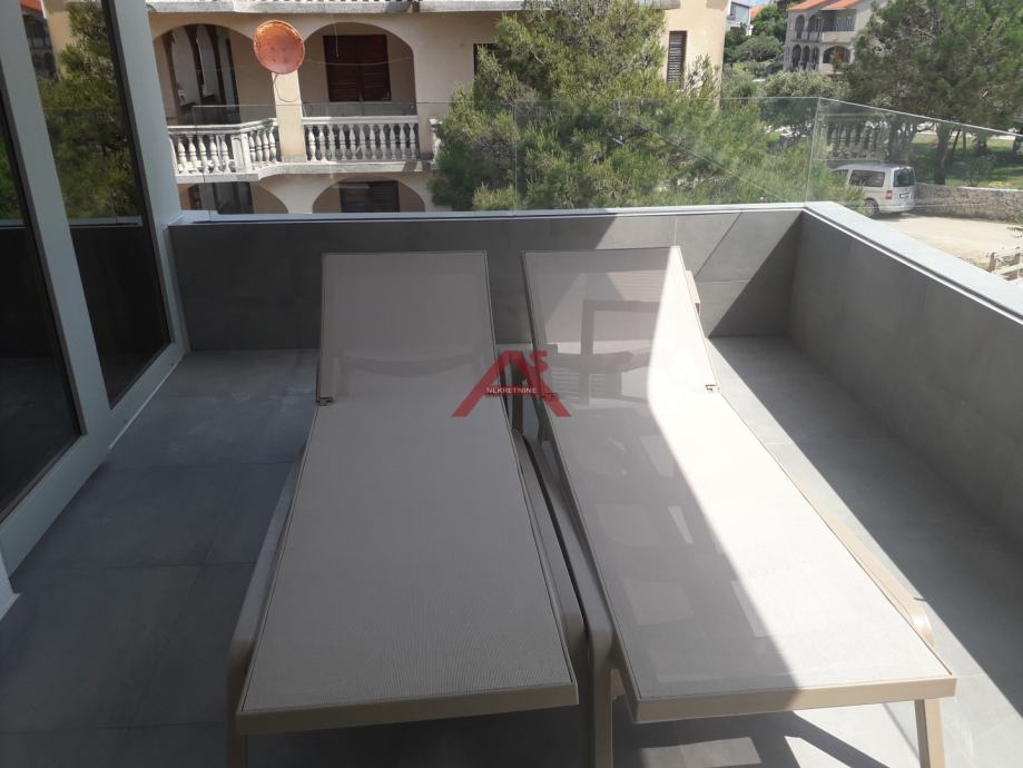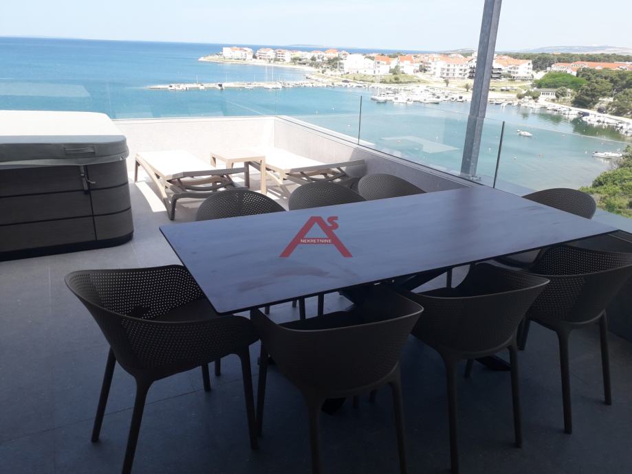 Dvoetažni apartman S10, na drugom katu prekrasne vile u zaljevu mjesta Povljana na otoku Pagu. Ovaj vrhunski apartman ima 130 m2 korisnog prostoora, vlastito brojilo vode i struje, vlastito grijanje putem toplotne pumpe marke Samsung, četiri terase od 16,35 i 12,15 m2 te parkirnog mjesta od 12.5 m2. Raspored apartmana je slijedeći; stubište, hodnik, spavaća soba, kupaonica, radna soba, terasa + galerija od 36,32 2 do koje se dolazi stubištem a čine ju hodnik, veliki boravak sa kuhinjom i trpezarijom, kupaonica i velika terasa do mora sa intimom. Na terasi je postavljen đakuzi. Pogled sa nje je savršen. Sva stolarija u stanu je vrhunske kvalitete. Unutarnja vrata su drveena, a vanjska stolarija je PVC-e sa aluminijumom, elektro podizači roleta, komarnici. Ovaj aprtman je ujedno i najopremljeniji apartman u villi kao i najveći. Apartman je opremljen namještajem izrađenim po narudžbi kao i ostalim dodacima. Kupac ovog apartmana ne plaća porez na promet nekretnina. Useljenje u apartman je moguće odmah nakon isplate konpletnog iznosa, a vlasnik za ovu cijenu dobiva namješten i opremljen apartman u potpunosti. Za razgledavanje ovog apartmana nazovite broj 0989137596. Vlasništvo i sva dokumentacija je uredna i bez tereta.