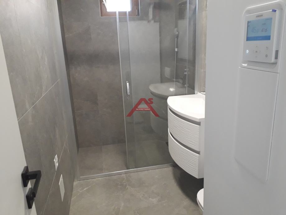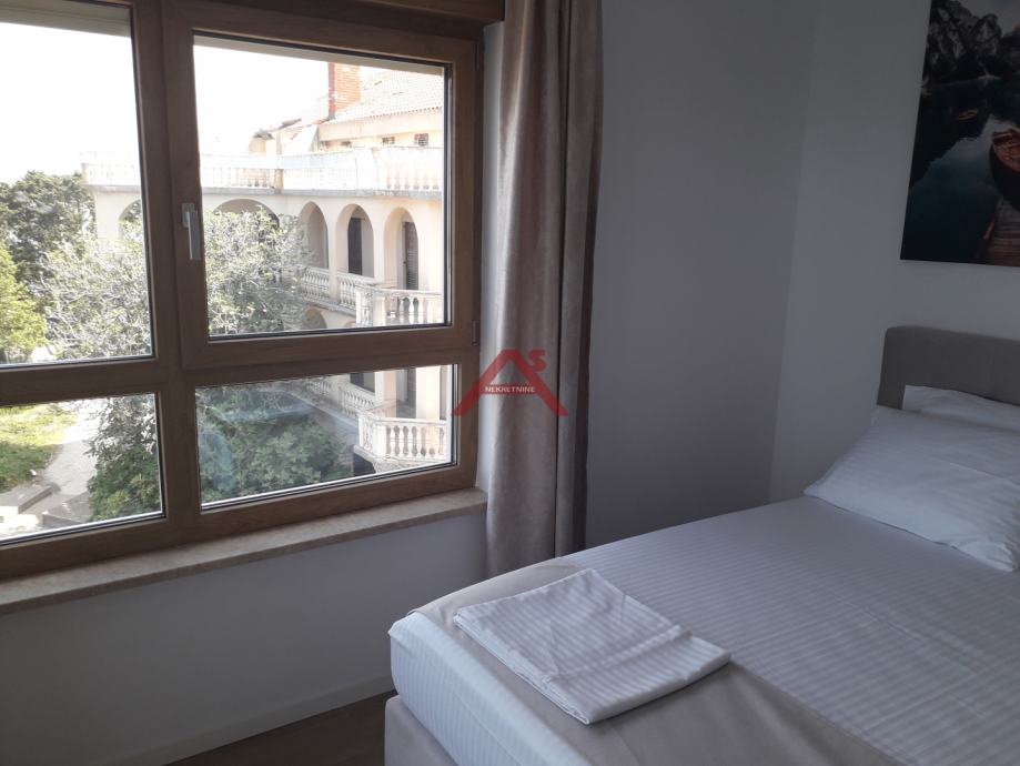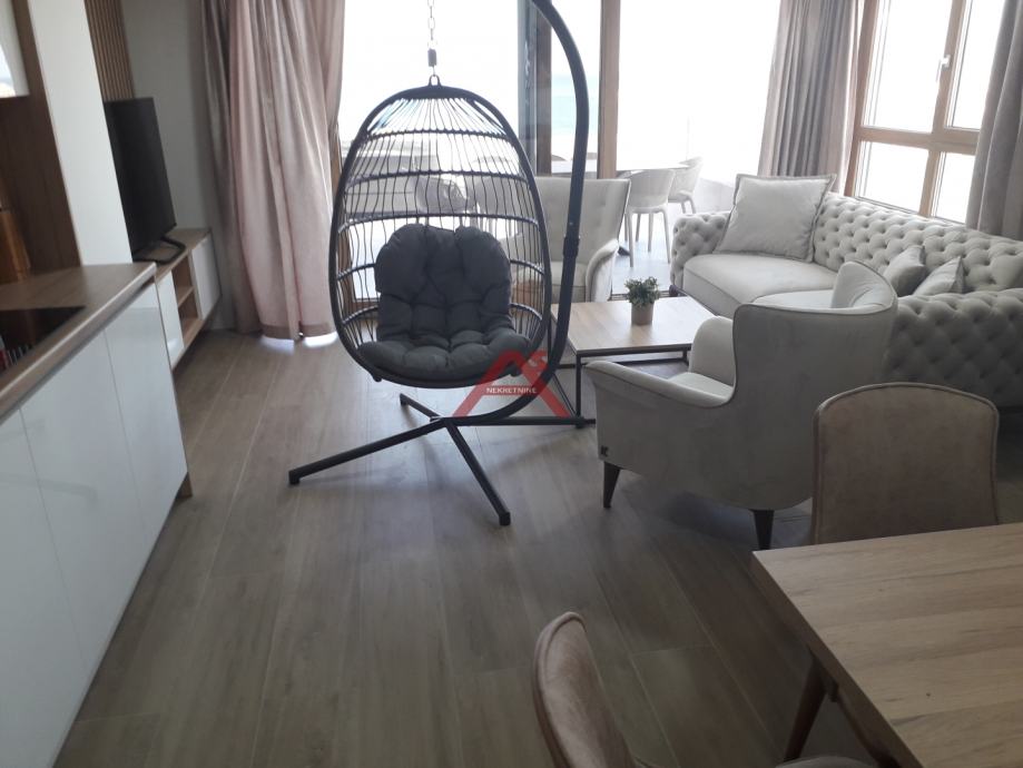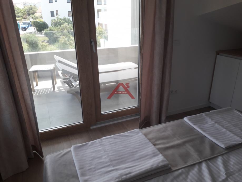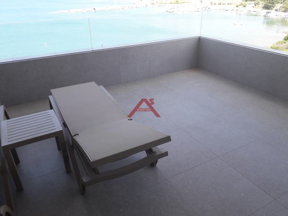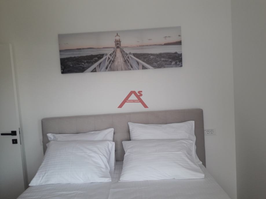 Dvoetažni apartman S10, na drugom katu prekrasne vile u zaljevu mjesta Povljana na otoku Pagu. Ovaj vrhunski apartman ima 130 m2 korisnog prostoora, vlastito brojilo vode i struje, vlastito grijanje putem toplotne pumpe marke Samsung, četiri terase od 16,35 i 12,15 m2 te parkirnog mjesta od 12.5 m2. Raspored apartmana je slijedeći; stubište, hodnik, spavaća soba, kupaonica, radna soba, terasa + galerija od 36,32 2 do koje se dolazi stubištem a čine ju hodnik, veliki boravak sa kuhinjom i trpezarijom, kupaonica i velika terasa do mora sa intimom. Na terasi je postavljen đakuzi. Pogled sa nje je savršen. Sva stolarija u stanu je vrhunske kvalitete. Unutarnja vrata su drveena, a vanjska stolarija je PVC-e sa aluminijumom, elektro podizači roleta, komarnici. Ovaj aprtman je ujedno i najopremljeniji apartman u villi kao i najveći. Apartman je opremljen namještajem izrađenim po narudžbi kao i ostalim dodacima. Kupac ovog apartmana ne plaća porez na promet nekretnina. Useljenje u apartman je moguće odmah nakon isplate konpletnog iznosa, a vlasnik za ovu cijenu dobiva namješten i opremljen apartman u potpunosti. Za razgledavanje ovog apartmana nazovite broj 0989137596. Vlasništvo i sva dokumentacija je uredna i bez tereta.