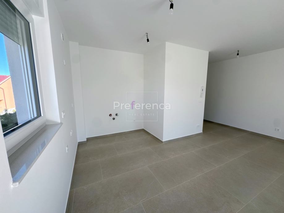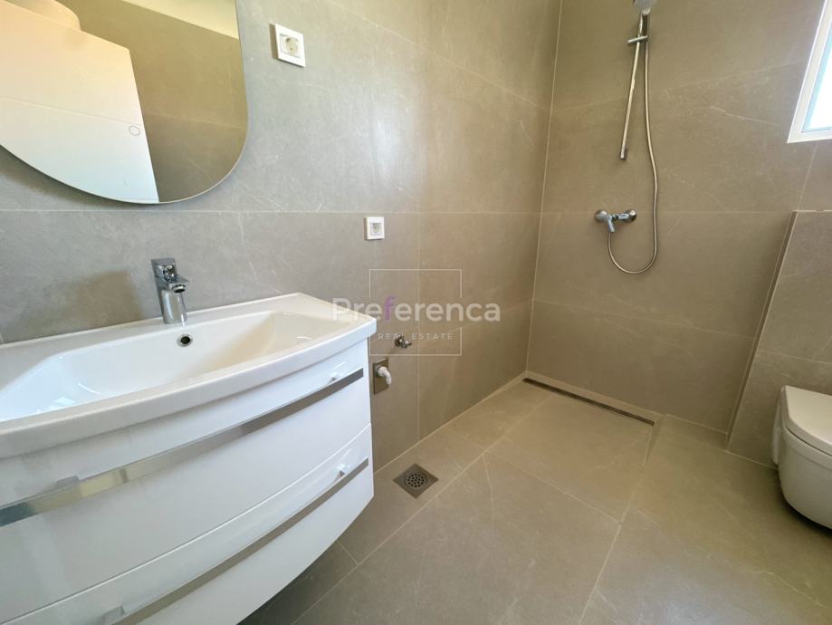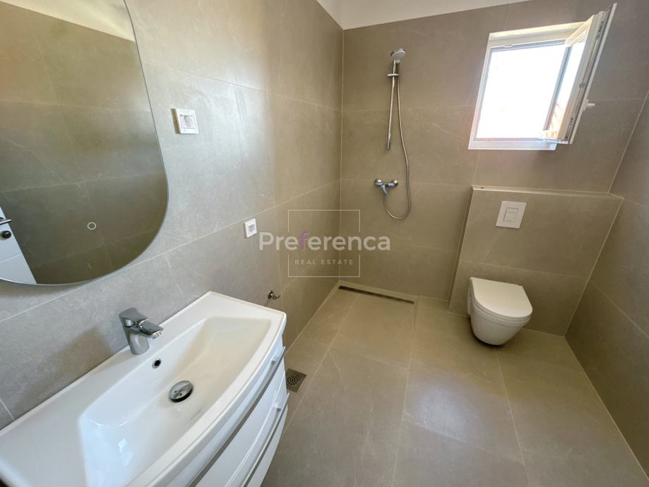 Prostor odiše svjetlošću i prozračnošću zahvaljujući velikim otvorima i odličnoj orijentaciji, dok terasa pruža privatnost i pogled na mirno okruženje.