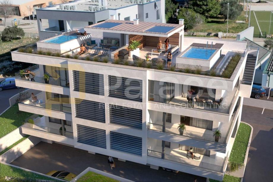 Na prodaju je idealni stan oznake S2 u prizemlju stambene zgrade opremljene dizalom i s ukupno osam stambenih jedinica. Stan je površine 54m2, a nalazi se na samo 700m od mora. Nekretnina se sastoji od hodnika, spavaće sobe, kupaonice i dnevnog boravka otvorenog koncepta s kuhinjom i blagovaonom. Iz dnevnog boravka se izlazi na prostranu loggiu.