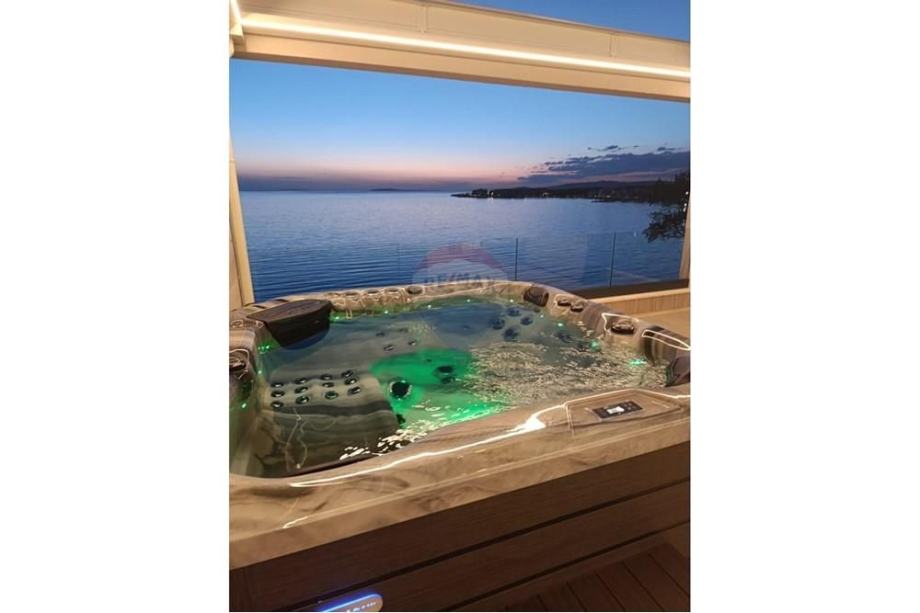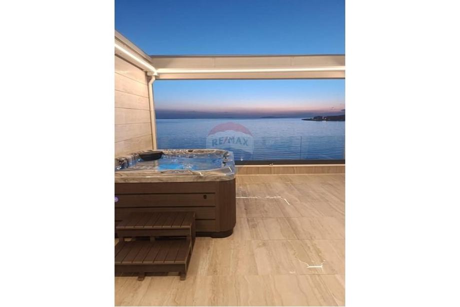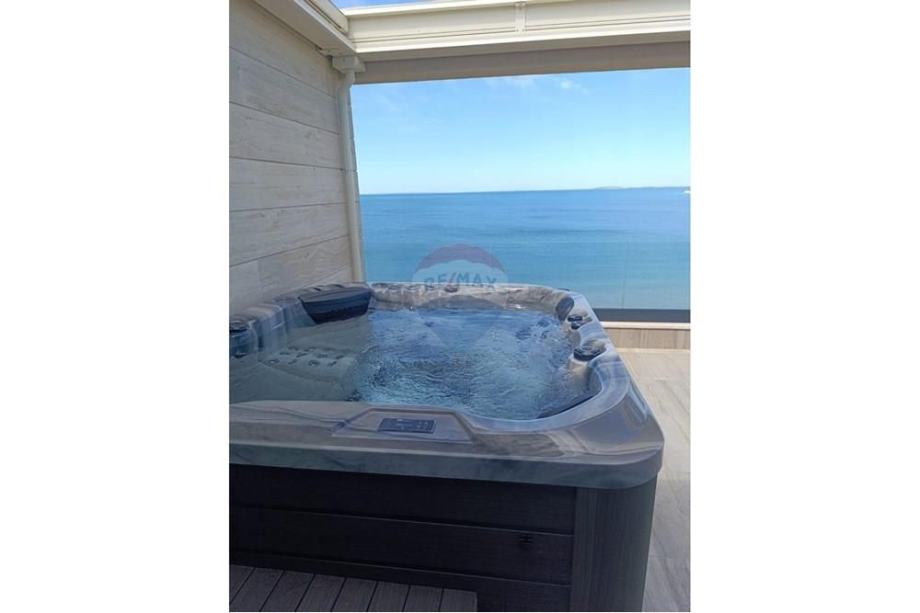 Drugu etažu čini još nenatkrivena terasa površine 30,20m2 koju upotpunjuje hidromasažni jacuzzi u kojem možete uživati i opustiti se uz predivan pogled na more i sami zalazak sunca.