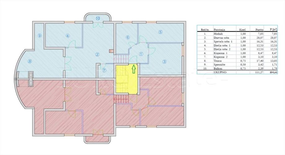 PROSTORIJE APARTMANA: vidjeti priloženi tlocrt i popis prostorija sa površinama