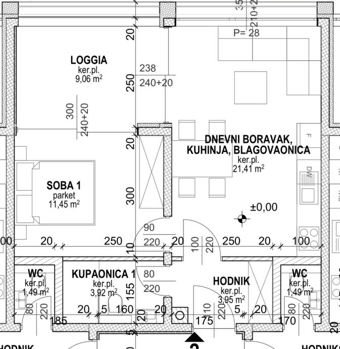 dnevnog boravka/blagovaone/kuhinje:21.41m2