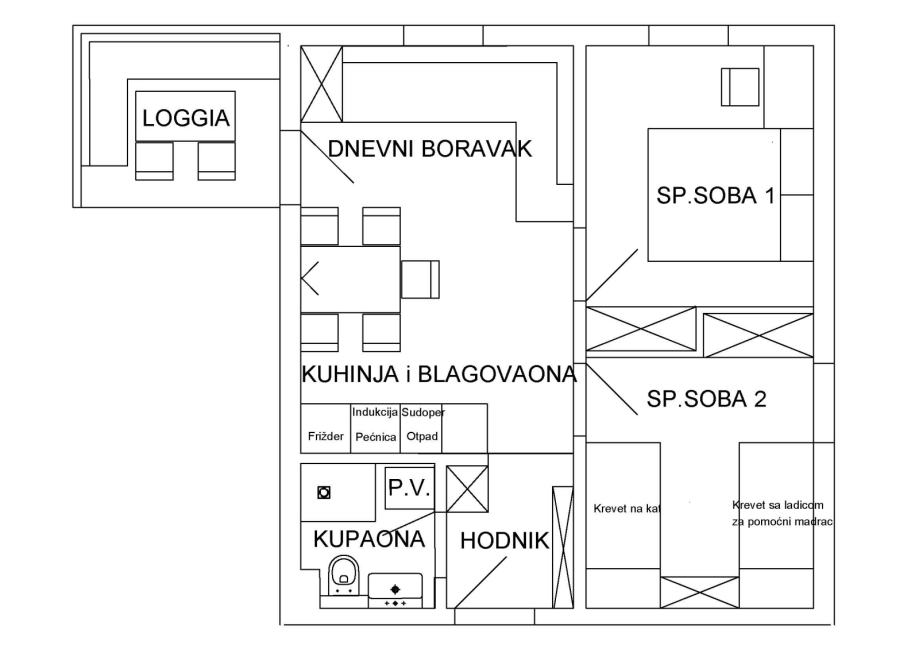 Sastoji se od dnevnog boravka s blagavaonom i kuhinjom, dvije spavaće sobe, kupaone, loggie i etažiranog parkirnog mjesta.