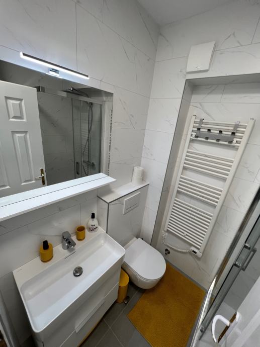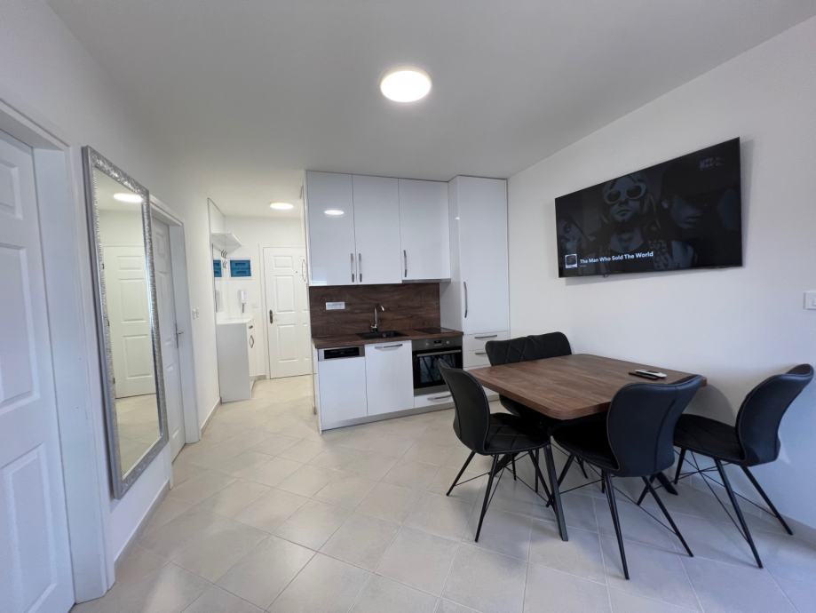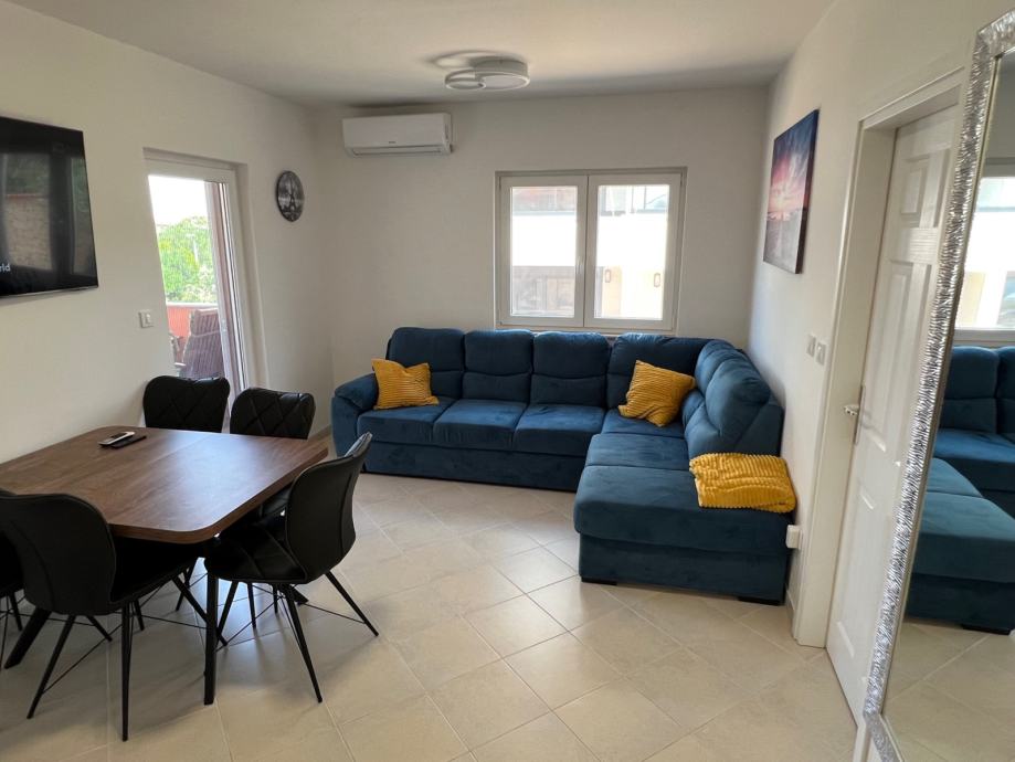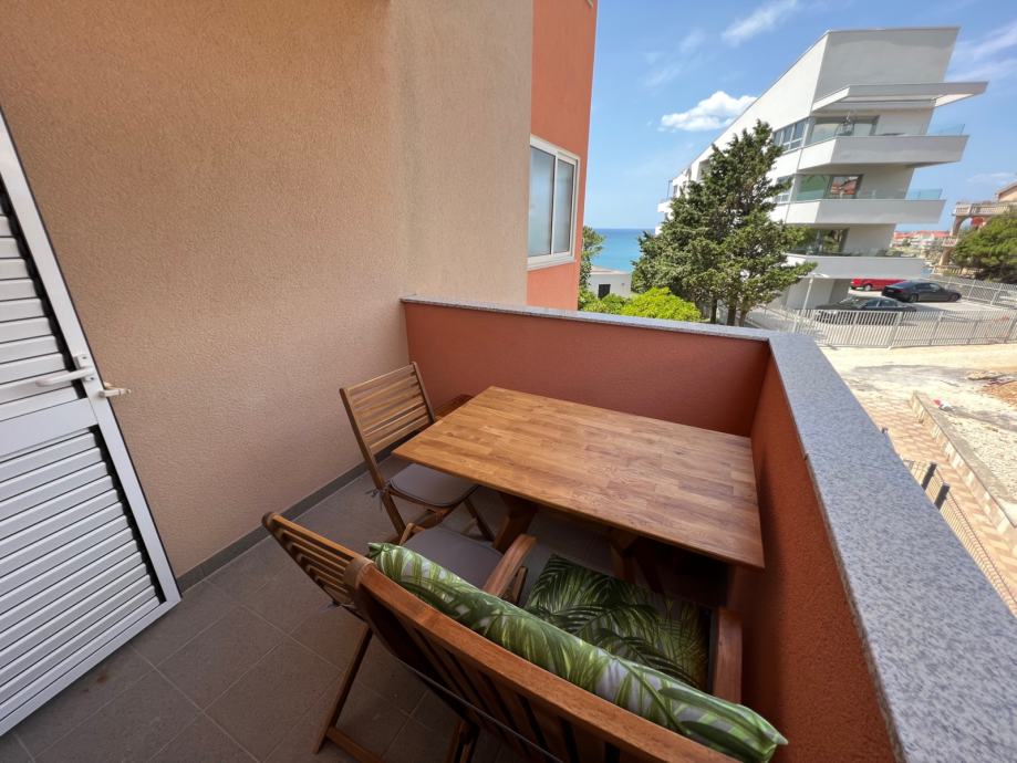Apartman je smješten na 1.katu zgrade na mirnoj lokaciji. 30m udaljen od mora i prve plaže, a do prve pješćane plaže udaljen je 100m.