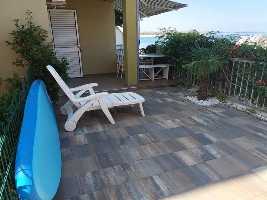 Prodaja se apartman, samo 50 m od glavne pješčane plaže Perilo, s tuševima i kafičima. Otok Pag povezan je trajektnim linijama ali i mostom (udaljen 15 min).