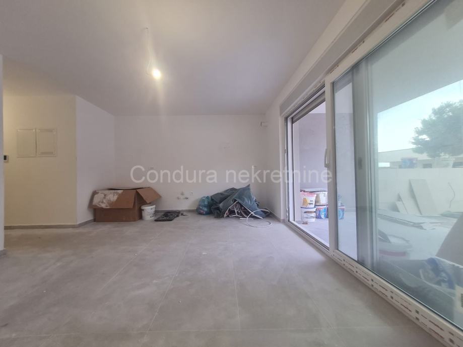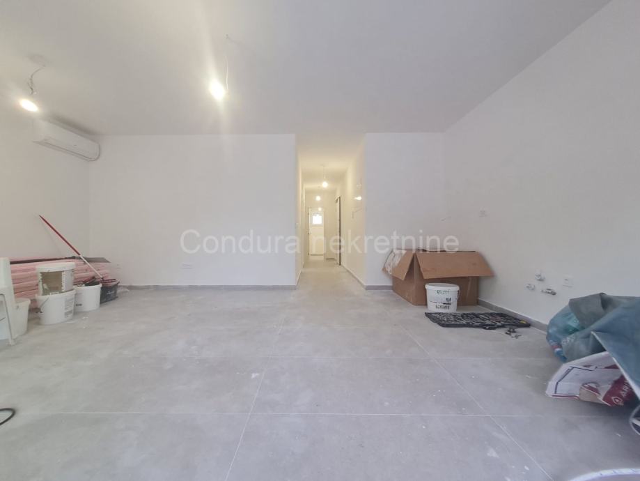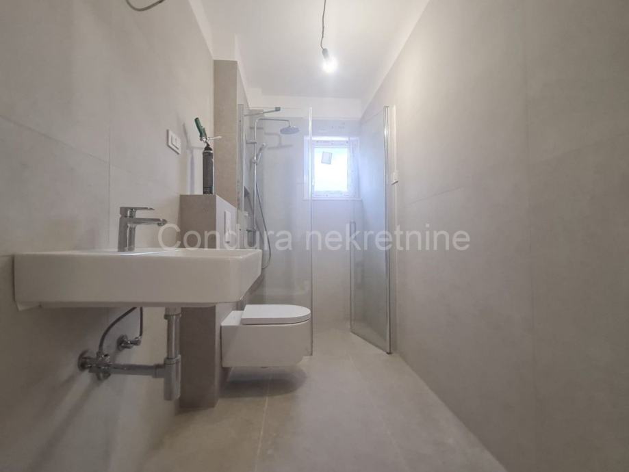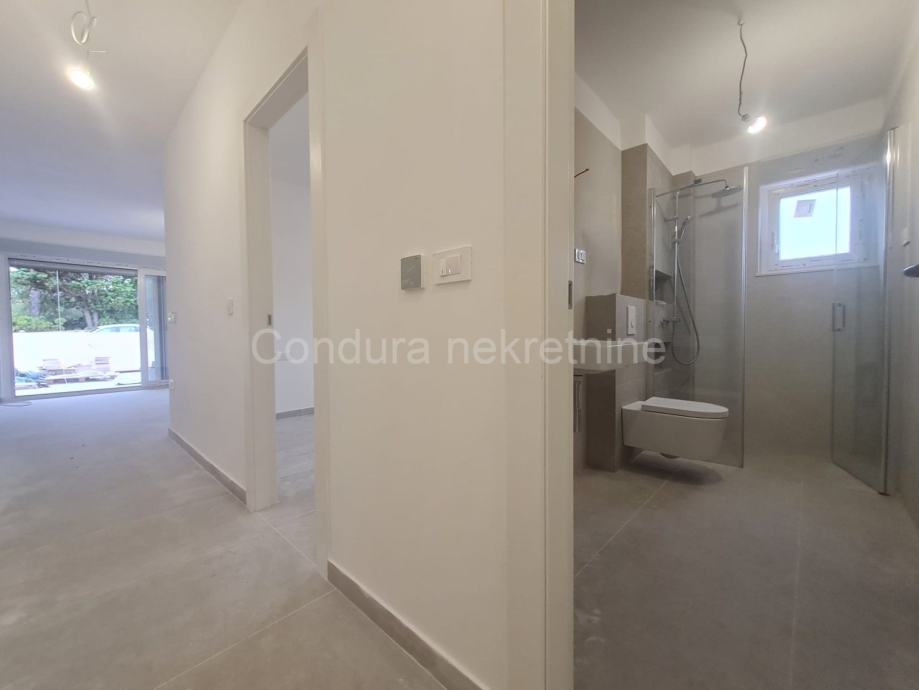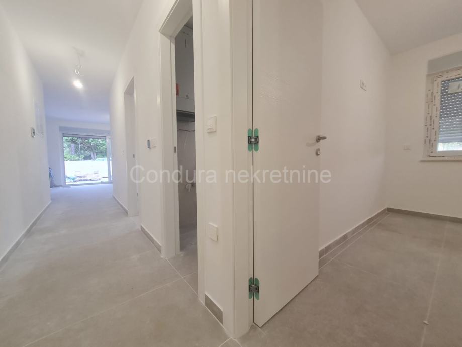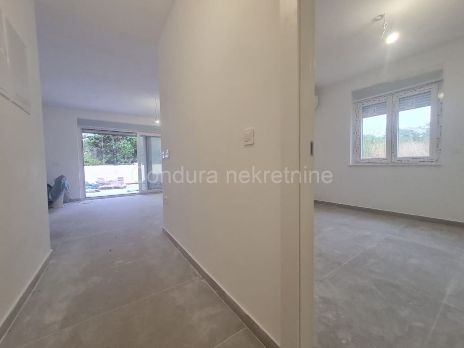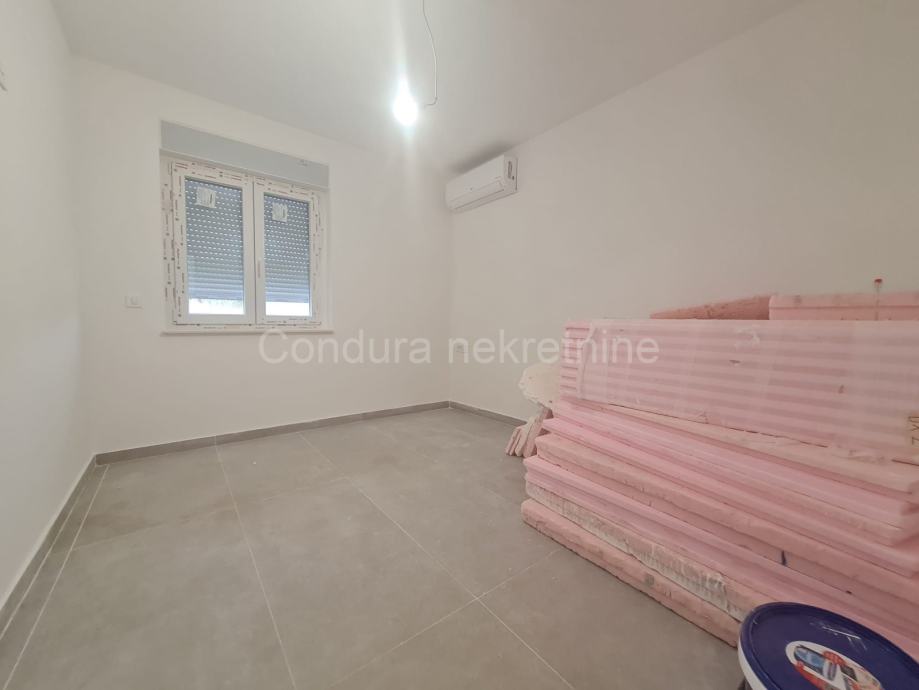 Vrhunska novogradnja:- prilikom gradnje koriste se samo najkvalitetniji materijali, osnovni konstruktivni sistem građevine je armiranobetonski a zidovi su od Porotherm profi cigle- podovi obloženi prvoklasnim keramičkim podlogama- klima uređaj za grijanje i hlađenje u svakoj spavaćoj sobi i dnevnom boravku te podno grijanje u dnevnom boravku i kupaonici- PVC ISO stolarija sa ugrađenim komarnicima te roletama na elektro pogon- ograde terase su kombinacije pune i staklene ograde- protuprovalna i protupožarna ulazna vrata- videoportafon, SAT TV