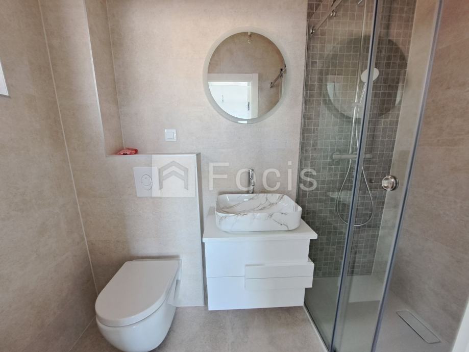 Površina stana iznosi 89,94 m2 + dvorište 31.44 m2 + parking, ukupne neto koristive površine 96,29 m2.