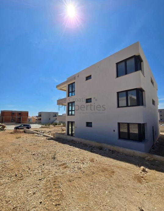 Prodaje se dvosoban stan na prvom katu moderne stambene zgrade s ukupno šest stambenih jedinica, smještene u mirnoj ulici novog naselja u Povljani, svega 350 metara od mora i plaže.