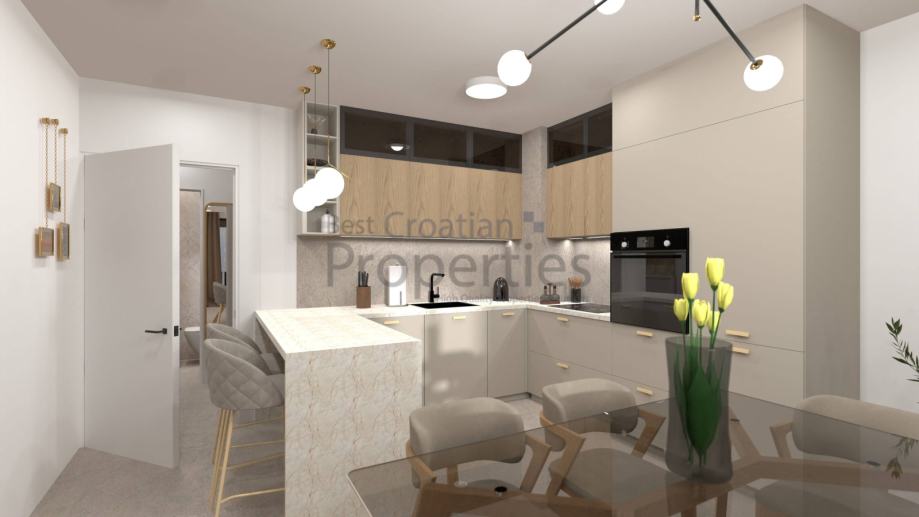 Stan se odlikuje kvalitetnom gradnjom, suvremenim dizajnom i funkcionalnim rasporedom prostorija. Idealan je za cjelogodišnje stanovanje, odmor ili kao investicija za turistički najam.