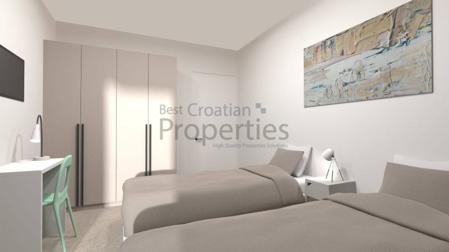 Prodaje se moderno dizajniran dvosoban stan na drugom katu novoizgrađene zgrade s ukupno šest stambenih jedinica. Stan se nalazi u mirnom i urbaniziranom dijelu naselja u Povljani, svega 350 metara udaljen od mora i prve plaže. Zgrada je građena visoko kvalitetnim materijalima i projektirana za energetski razred A+.