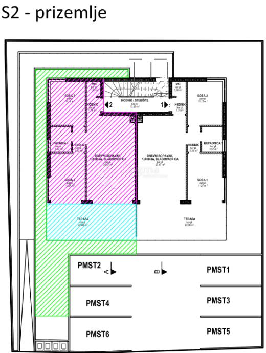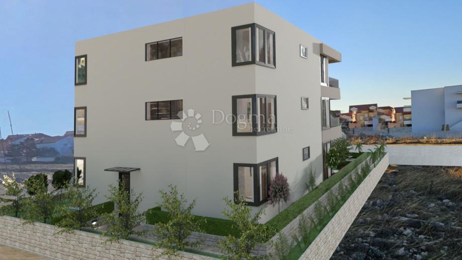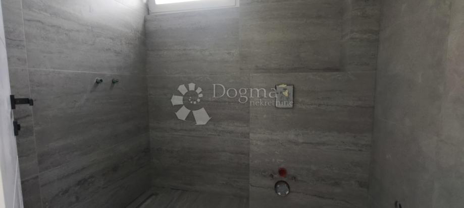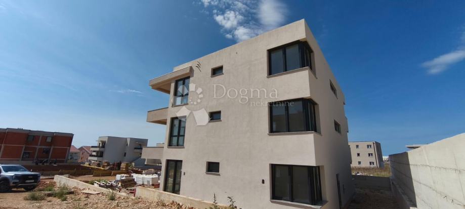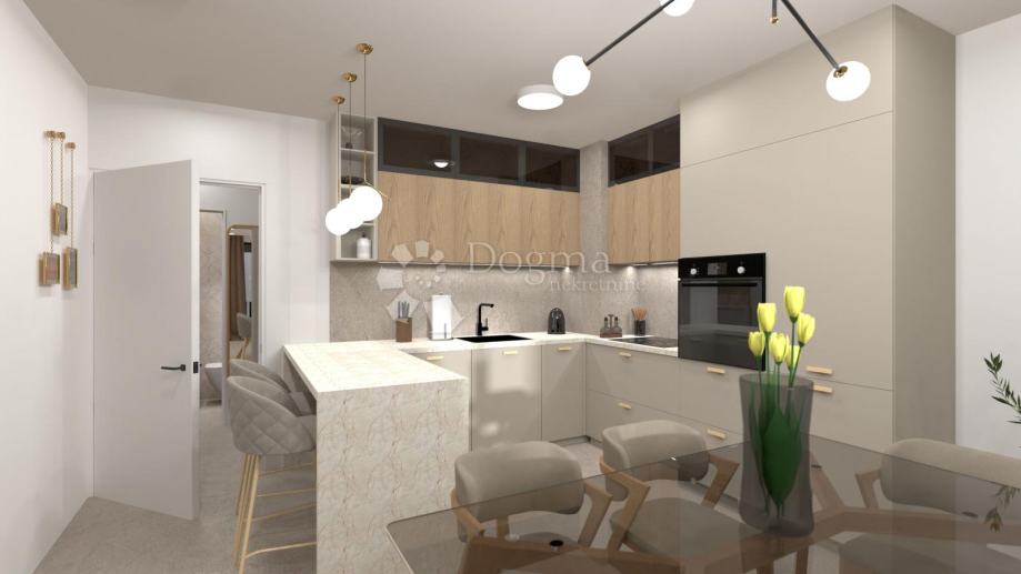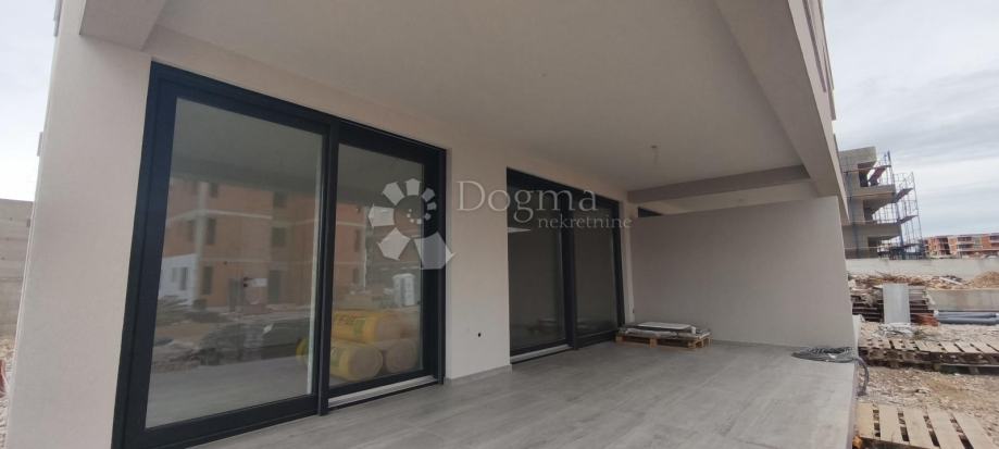 Na prodaju je moderno dizajniran prizemni stan u zgradi s ukupno 6 stanova, vrhunske kvalitete gradnje. Sastoji se od hodnika, WC-a, dvije spavaće sobe (jedna s izlazom na veliku terasu), kupaonice i prostranog dnevnog boravka s kuhinjom i blagovaonicom, koji također ima izlaz na terasu od 22 m² kroz kliznu staklenu stijenu. Stanu pripada i 40 m² okućnice te jedno parkirno mjesto.