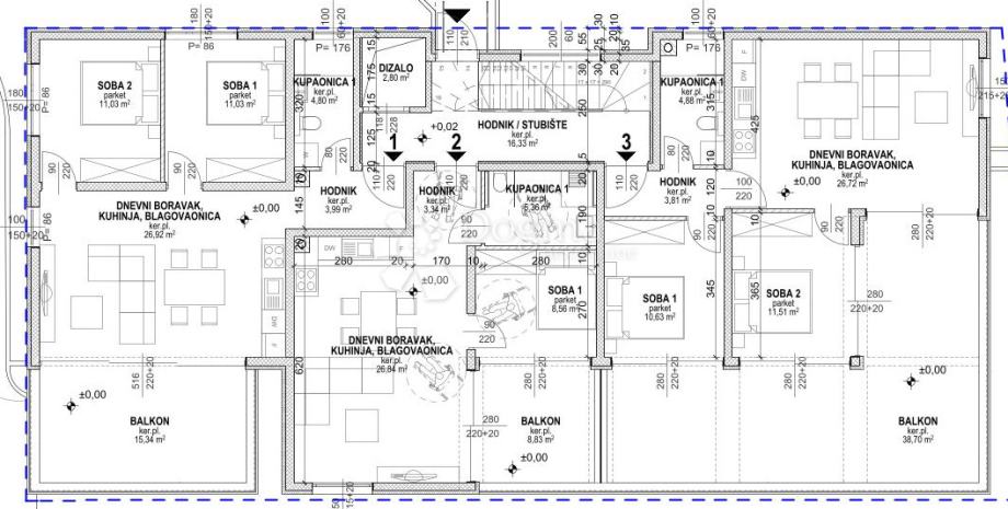 Vanjski prostor: terasa (15,34 m²) + dvorište (23,54 m²) – savršeno mjesto za opuštanje