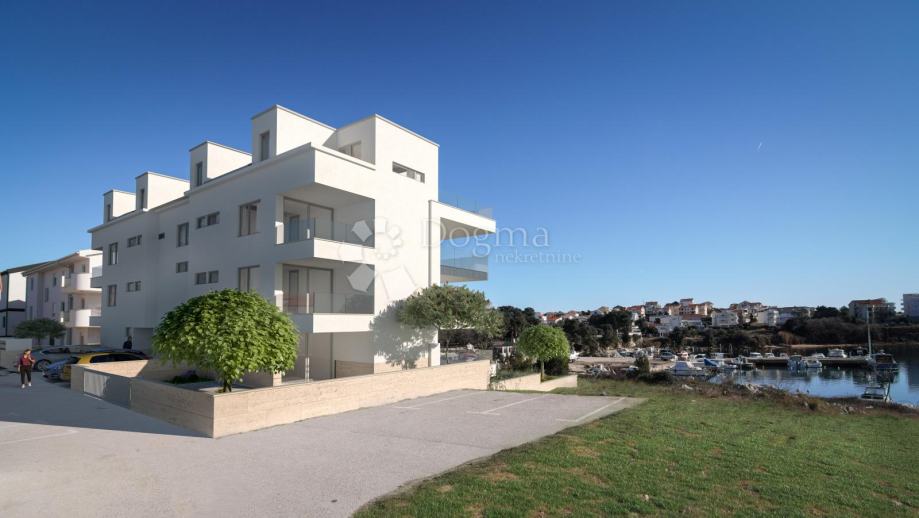 Na prodaju je predivan stan smješten na prvom redu uz more, sa površinom od 84.75m2. Ovaj prostrani stan nudi udoban životni prostor s dvije spavaće sobe, kupaonicom, dnevnim boravkom i kuhinjom. Također, stan ima 2 balkona sveukupne površine 32.79m2 s prekrasnim pogledom na more, idealan za uživanje u jutarnjoj kavi ili večernjem opuštanju.