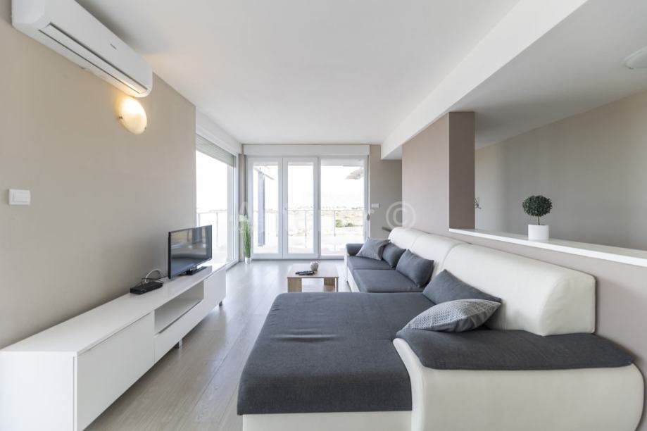 Apartman je ukupne površine 129,98 m2 sa terasama ( stambene površine 78,04 m2), a sastoji se od tri spavaće sobe, dvije kupaonice, dnevnog boravka i prostrane terase. Stanu pripada parkirno mjesto i pravo korištenja zajedničkog bazena, zone za roštiljanje i dječje igralište.