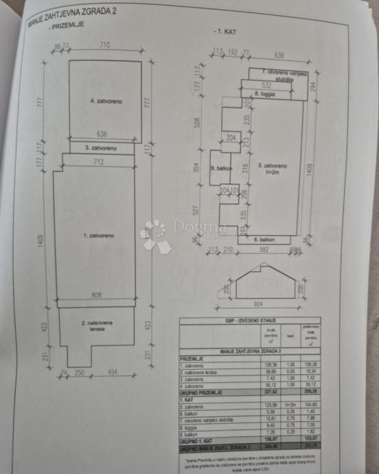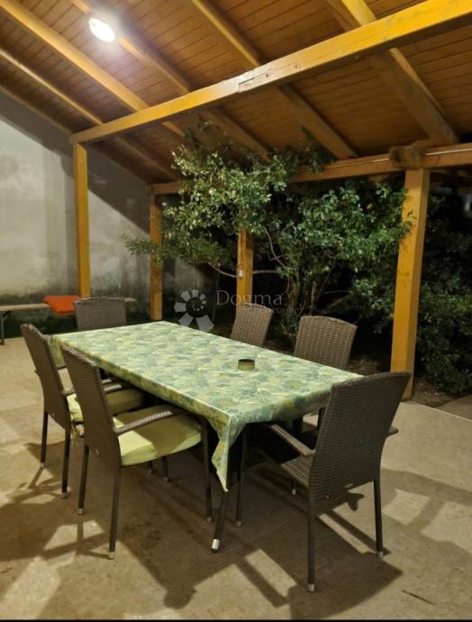 Također očarava svojom lijepo uređenom okućnicom i šarmantnim detaljima. Prizemlje krije prostranu natkrivenu garažu sa spremištem, natkrivenu terasu, tri sobe, te tri kupaonice (dvije s WC-om, jedna zaseban WC), uz veliki otvoreni prostor kuhinje, blagovaonice i dnevnog boravka – savršeno za druženja i opuštanje. Kat nudi prostrani ulaz, hodnik i tri predivna balkona (loggia, balkon, prednji balkon) koji pružaju pogled na mirno susjedstvo i prirodu. Svaki kutak odiše pažnjom, s tri kuhinje s blagovaonicom, tri sobe i tri kupaonice na katu, što je čini idealnom za više obitelji ili smještajne jedinice. Njezin jugoistočni položaj osigurava obilje sunca, dok je stražnji dio okrenut prema sjeverozapadu.