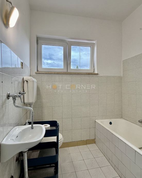 Kupaonica je prostrana i osvijetljena prirodnim svjetlom, dok prostor kuhinje i dnevno-spavaće sobe nudi dobar temelj za udoban život. Parket u sobi unosi toplinu, a keramičke pločice u hodniku i kupaonici olakšavaju održavanje.