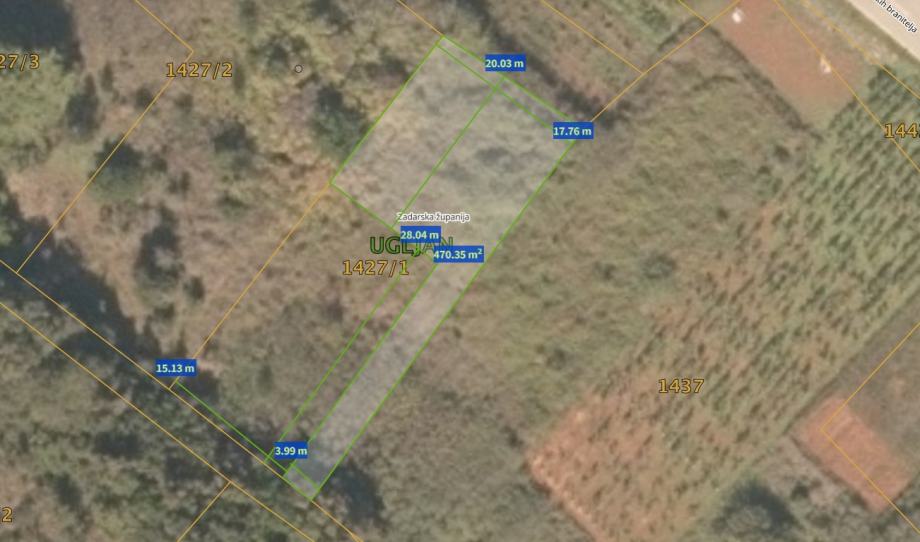Prodaje se povoljno građevinsko zemljište u mjestu Ugljan, Otok Ugljan. zemljište je momentalno u parcelaciji na 2 parcele, pa je moguća kupnja i cca polovice terena. Okruženo je prirodom i prve kuće su udaljene 100 m. Dimenzije zemljišta su 19x48m, a drugi je red od glavne otočne prometnice s pristupnim putem. Građevinska čestica je udaljena 370 m od mora zračne linije, 450 m od centra s trgovinama i ugostiteljskim objektima, ambulantom, plažama, a 200 m od autobusne stanice. Trajektno pristanište je udaljen cca 10 km, tj 10 min automobilom, sveukupno 30 minuta od Zadra, s 29 brodskih i trajektnih linija na dan ovu liniju čine najprometnijom na Jadranu samo 15 min vožnje, te je otok Ugljan vrlo atraktivnim za odmor i život zbog blizine Zadra i autoputa, zračne luke. Cijena 65,43 eur/m2