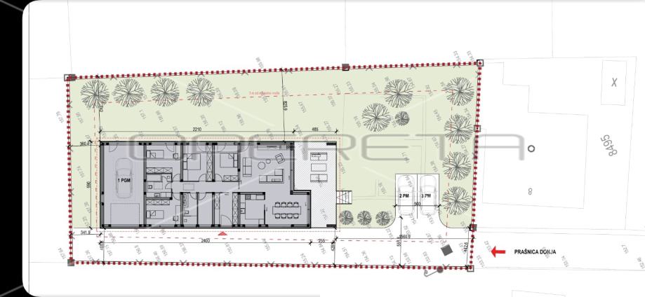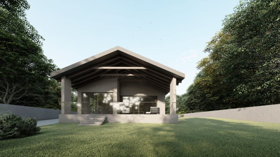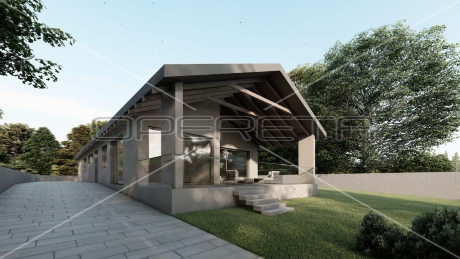 Dimenzije zemljišta su 25 x 50m, a BRP kuće 230m2, 4 spavaće sobe. Parcela se nalazi u zelenilu, na kraju asfaltirane ceste, s prekrasnim pogledom prema gradu. Blagi pad parcele. Priključci su uz samu parcelu. Plaćeni komunalni doprinosi.