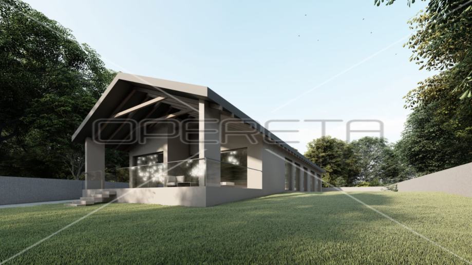Prodaje se lijepo građevinsko zemljište od 1.037m2 uz samu cestu sa pravomoćnom građevinskom dozvolom za prizemnu obiteljsku kuću s garažom. stambenoj zoni.