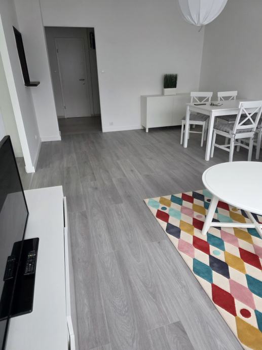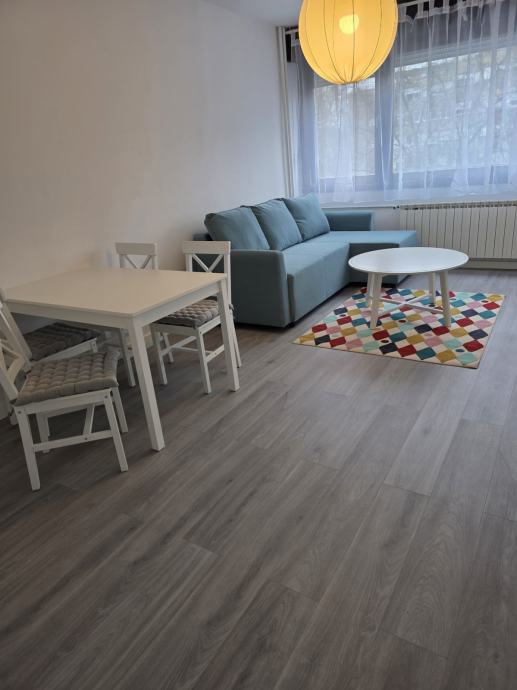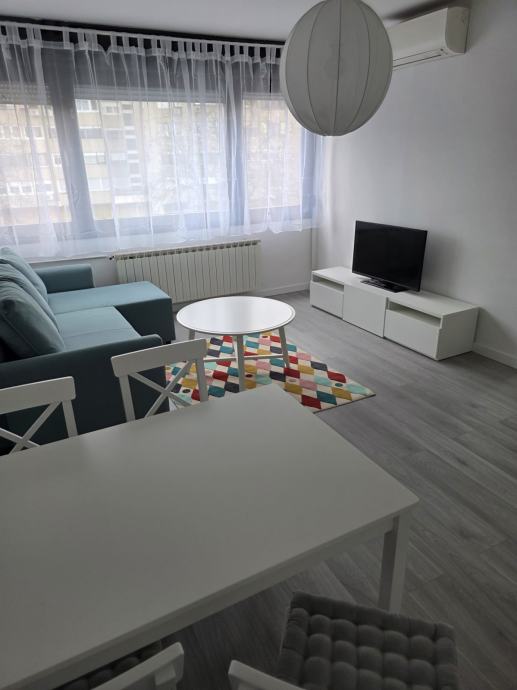 Iznajmljuje se potpuno novouređen i novonamješten stan na drugom katu odlično održavane stambene zgrade s liftom. Stan se iznajmljuje prvi put nakon uređenja, a u njemu je sve novo i nekorišteno.