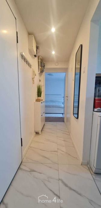 Stan na IV katu zgrade bez lifta. Na ukupnoj površini od 47,62 m2, smješteni su ulazni hodnik,dnevni boravak s balkonom, kuhinjica, kupaona, te spavaća soba s balkonom.