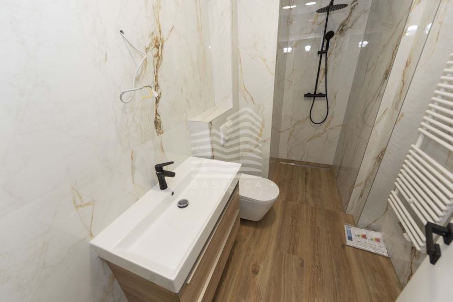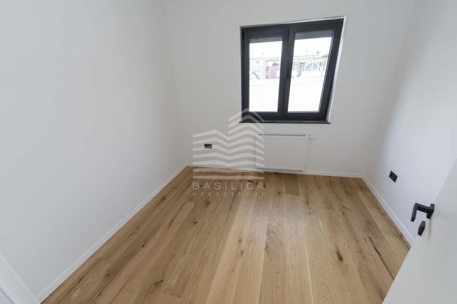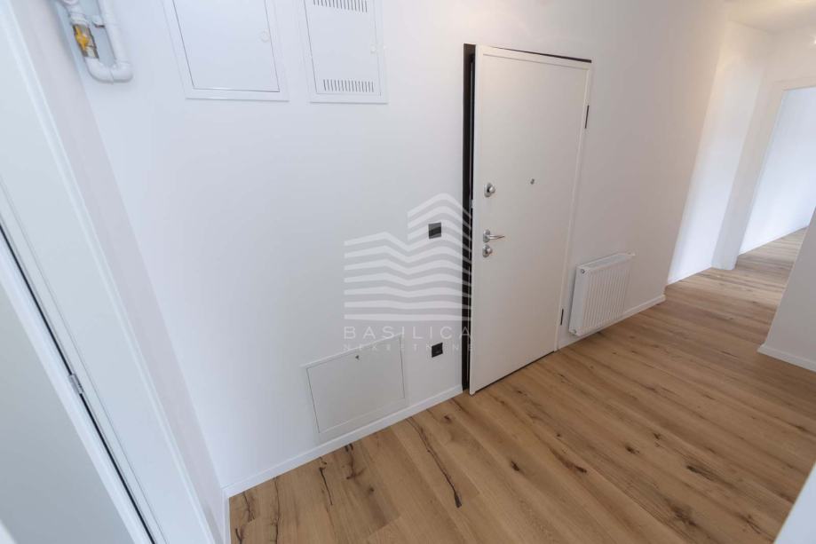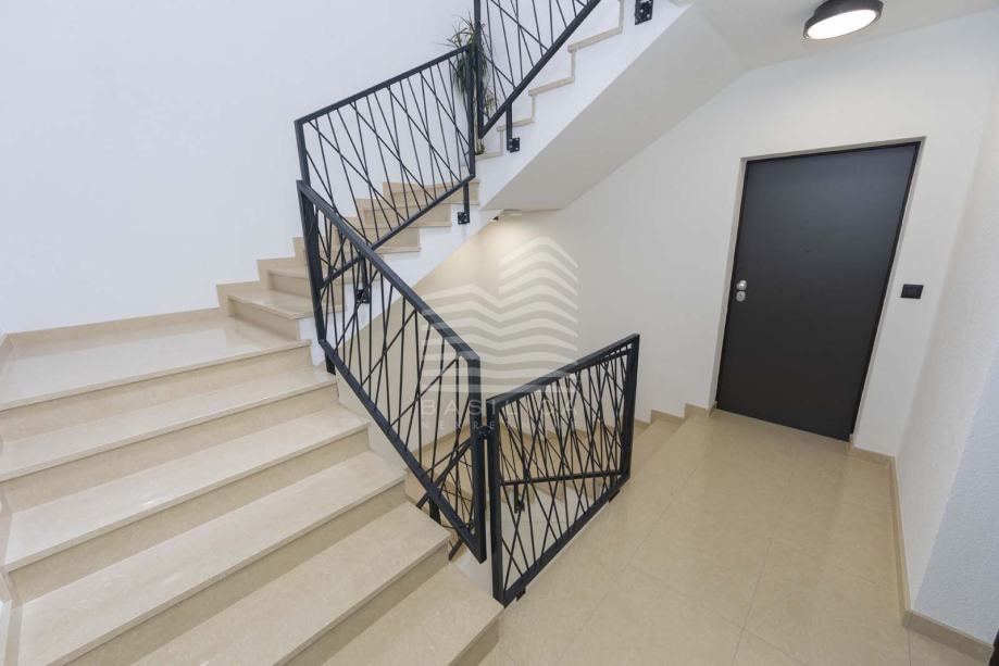 OPREMA:- gradnja: armirano betonska sa opekom- fasada stiropor 15cm- stubište izolirano- PVC stolarija sa tri stakla- unutarnja stolarija bijele boje- centralno etažno plinsko grijanje sa kondenzacijskim Vaillant bojlerom i radijatorima.- parket hrast- pločice 1. klasa- sanitarije - walk-in tuš, te ugradbeni vodokotlić sa visećom školjkom.- klima uređaj- protuprovalna i protupožarna vrata- portafon