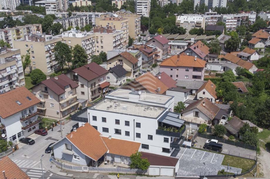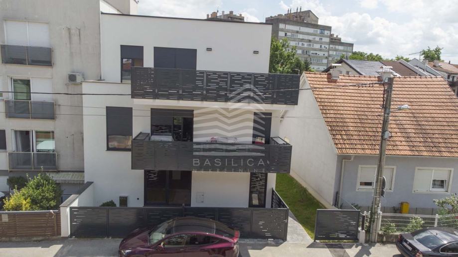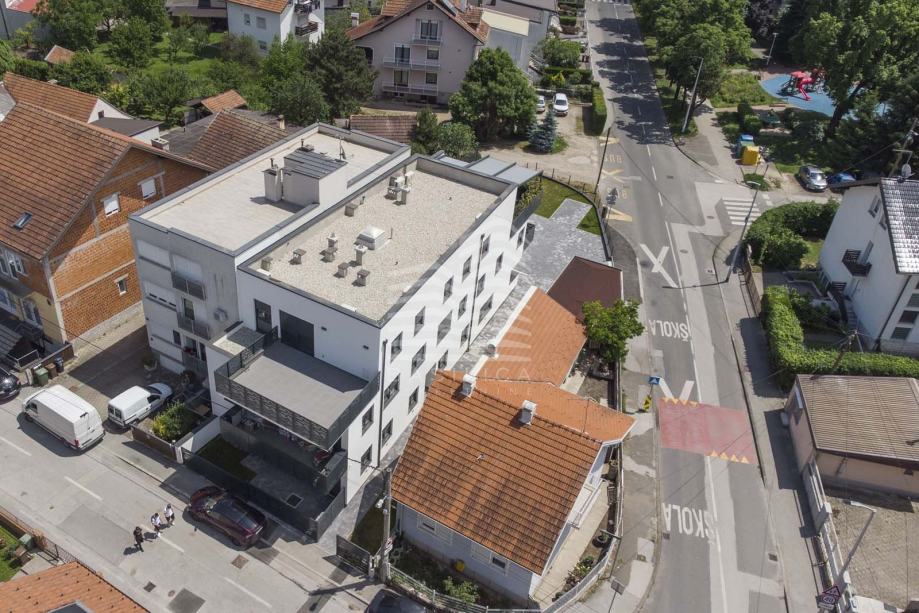 Prečko, ulica Prečko u blizini tržnice, tramvaja i škole, mirna lokacija, zgrada od ukupno 7 stanova, sastoji se od prizemlja i dva kata. Novogradnja, dovršena i useljiva.