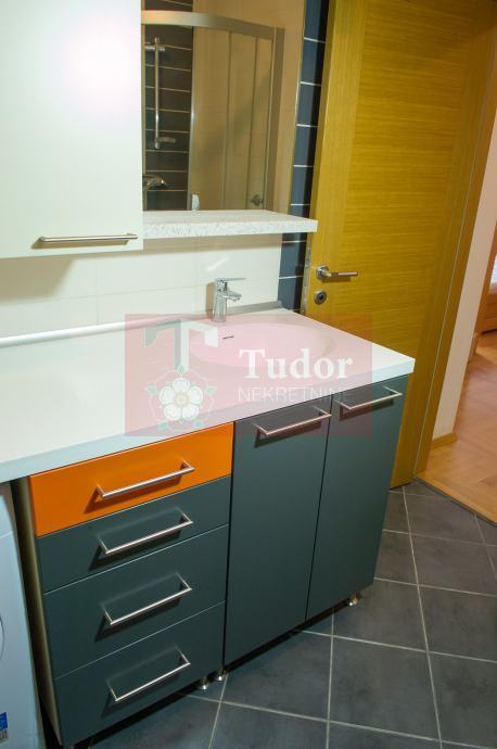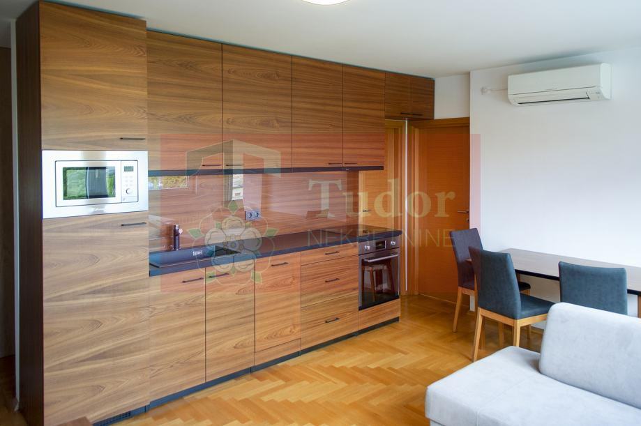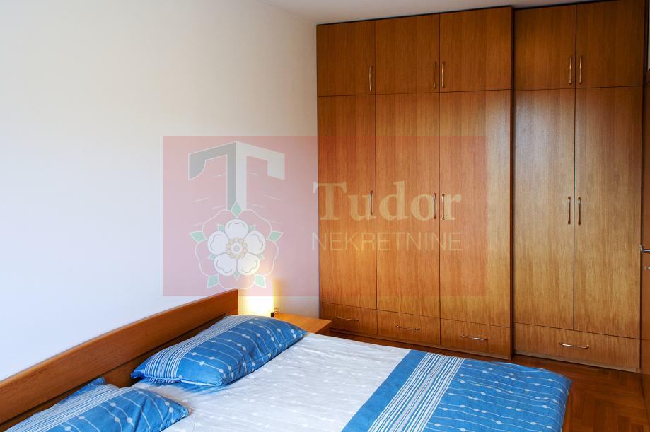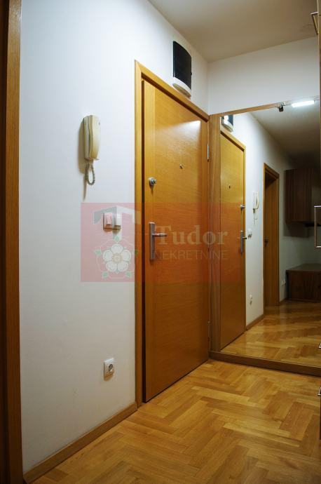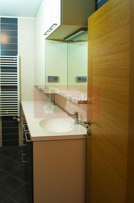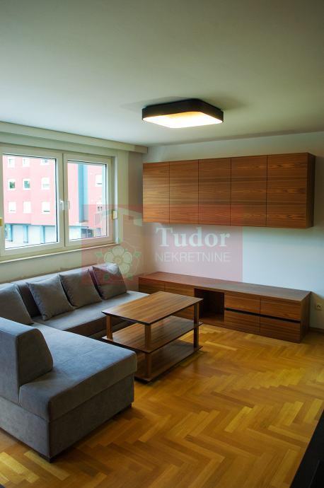 Iznajmljuje se potpuno novo namješten trosoban stan na 1. katu zgrade s liftom u Petrovaradinskoj ulici, preko puta Sky Office-a. Stan se sastoji od spavaće sobe s bračnim krevetom, druge sobe opremljene radnim stolom, kupaonice s tušem i perilicom rublja, dnevnog boravka s kuhinjom i blagovaonicom te loggie s pogledom na istok. Kuhinja je opremljena indukcijskom pločom, električnom pećnicom, perilicom posuđa, a ulazna vrata su protuprovalna. Uz stan dolazi i parkirno mjesto u podzemnoj garaži na etaži -1 te spremište površine 6 m².