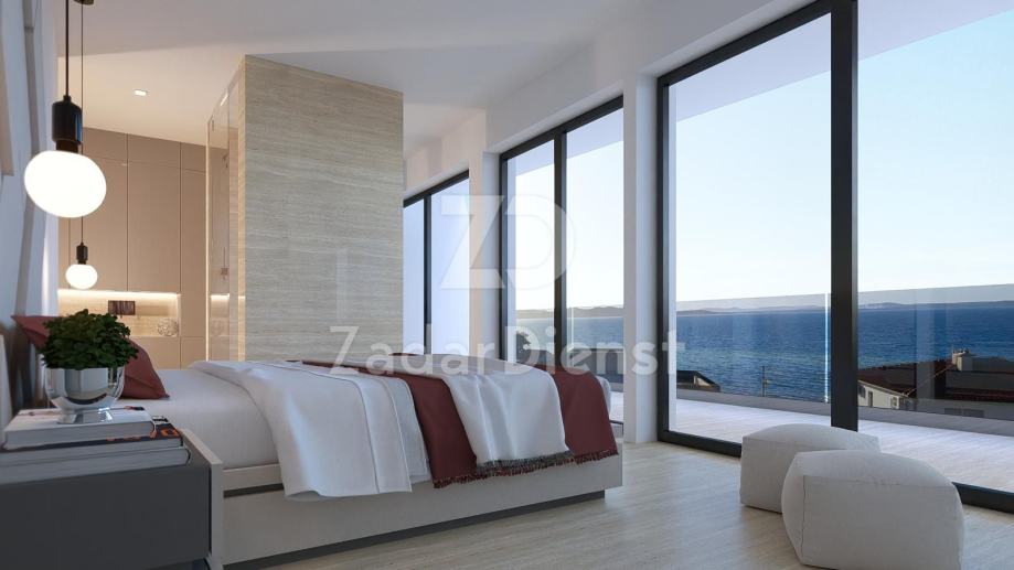 Stambena zgrada je projektirana s najkvalitetnijim materijalima uključujući fasadu od rimskog kamena Travertin, vrhunsku talijansku keramiku, antracit aluminijsku stolariju i staklene ograde koje osiguravaju neometan pogled na more i zadarski kanal. Stan je također opremljen sustavom podnog grijanja i klima uređajem što omogućava vrhunsku udobnost tijekom cijele godine.