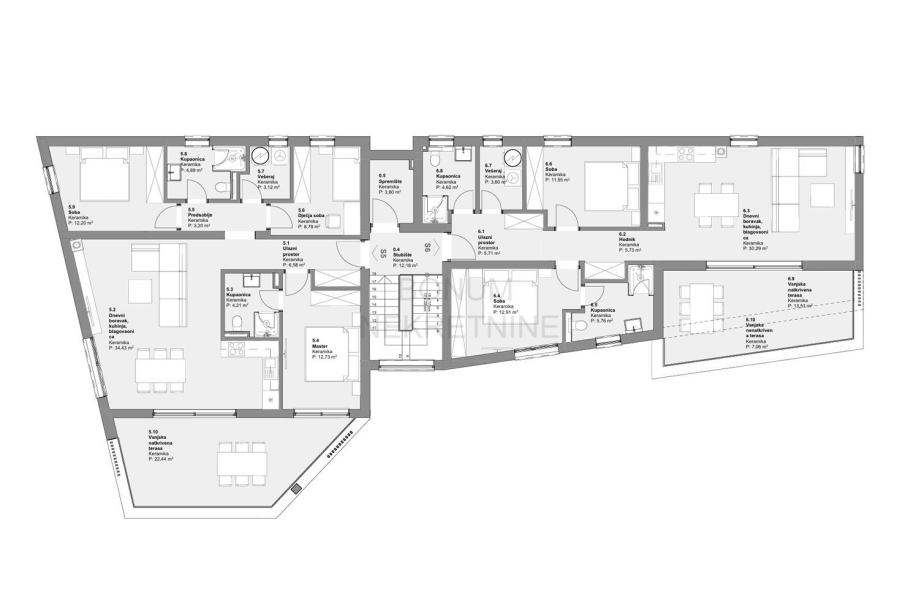 STAN S5( drugi kat)- sastoji se od ulaznog hodnika, tri spavaće sobe, dvije kupaone, vešeraja, predsoblja te vanjske natkrivene terase.