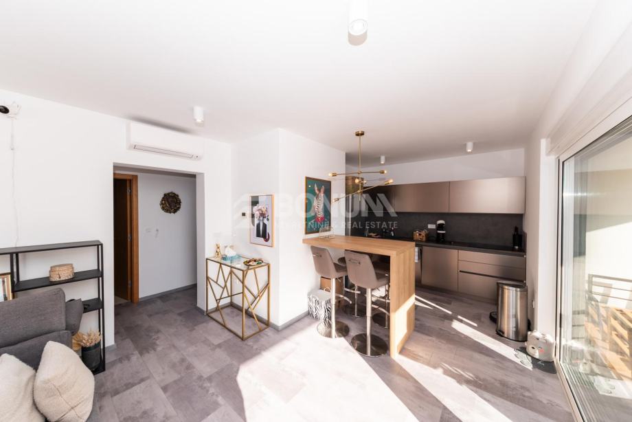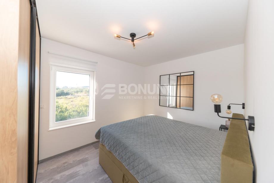 Na prodaju je moderan i luksuzan stan u Vodicama, smješten u prizemlju suvremene zgrade izgrađene 2021. godine. Stan se nalazi na mirnoj lokaciji, u blizini plaže, svega 300 metara od mora, i nudi udobnost, privatnost te visoku razinu kvalitete stanovanja.
