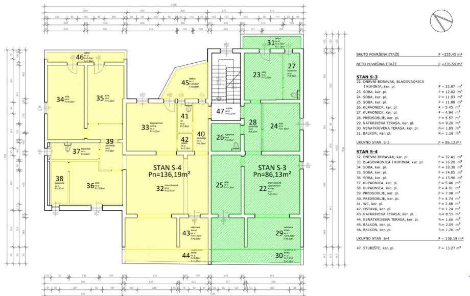 Ukupna neto korisna površina ovog apartmana iznosi impozantnih 136,19 m². Dodatno, stanu pripadaju spremište SP5 s neto korisnom površinom od 3,80 m², te dva parkirna mjesta P6 i P7, svako s neto korisnom površinom od 3,36 m². To znači da ukupna neto korisna površina stana iznosi čak 146,71 m², pružajući vam obilje prostora za ugodan život.