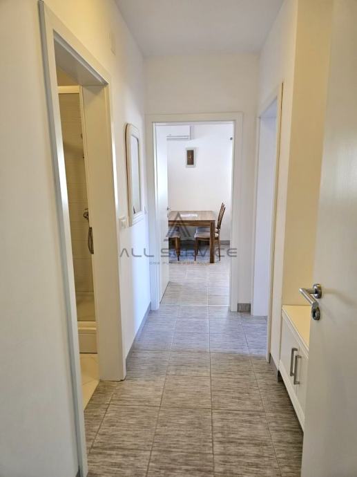 Dvosoban apartman s predivnim pogledom nalazi se na drugom katu neposredno uz more, nudi predivan ambijent i blizinu svih potrebnih sadržaja. Stambene površine 46 m² te vlastitog parkirnog mjesta od 13,5 m², ukupne prodajne površine od 49 m².