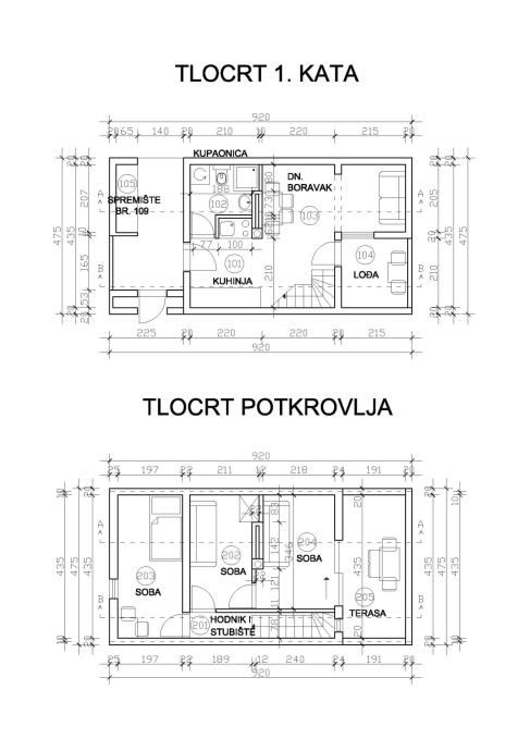 Potpuno uređeni dvoetažni apartman na 1. katu i adaptiranom potkrovlju.