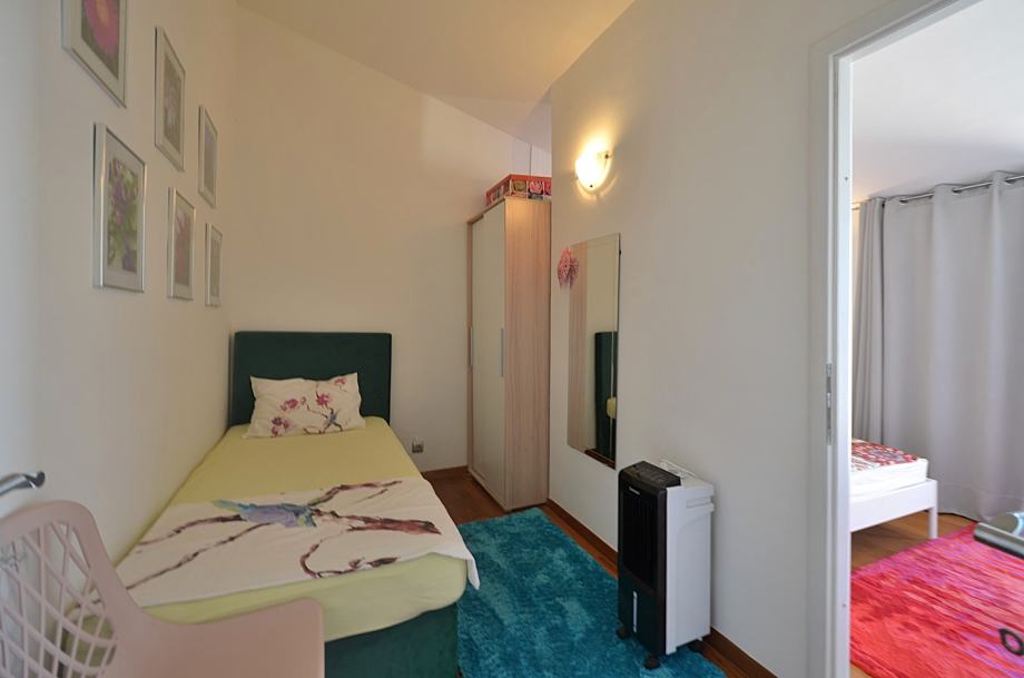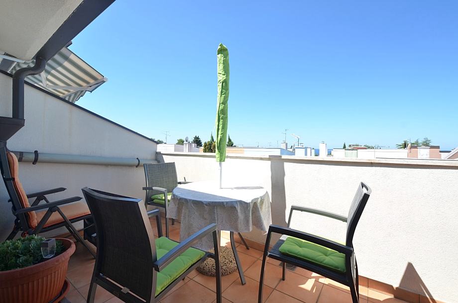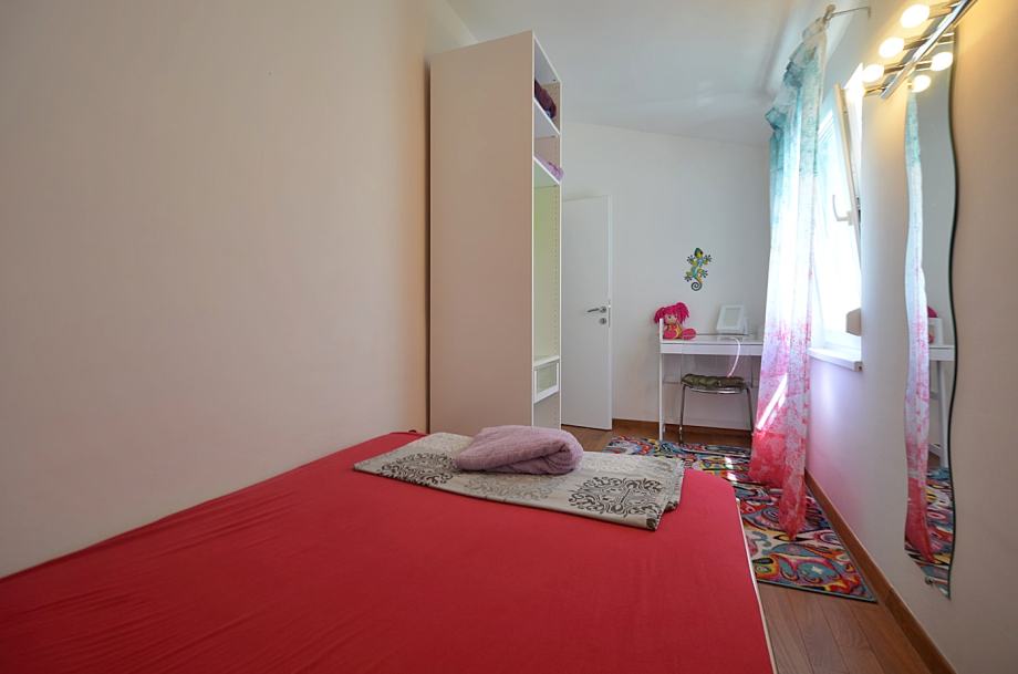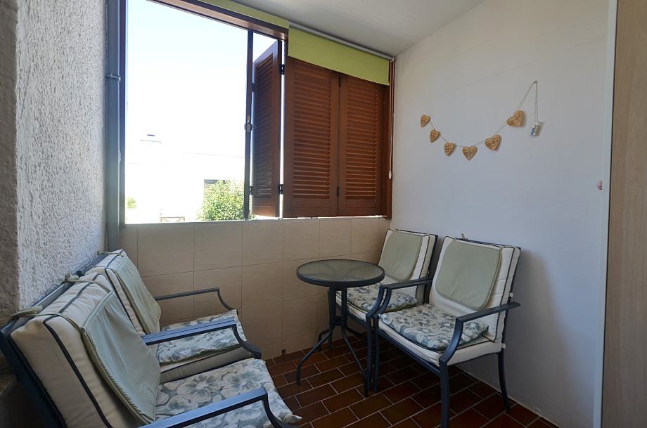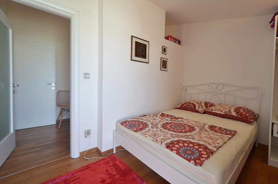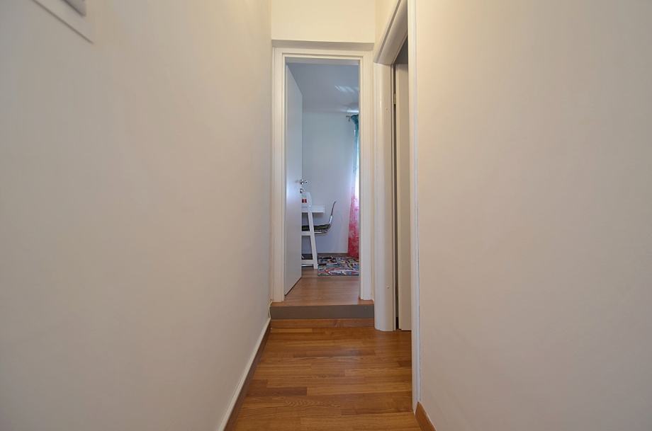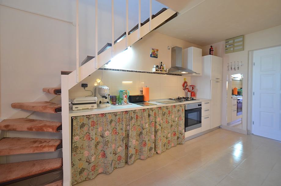 Raspored je slijedeći: U prizemlju je toalet, kuhinja, blagovaonski dio i dnevni boravak te loggia. Na katu tri sobe i velika terasa. Na podu u sobama je klasični drveni parket, u prizemlju je keramika. Stanu pripada i veliki vanjski plakar. Vanjski otvori zatvoreni novim aluminijskim griljama.