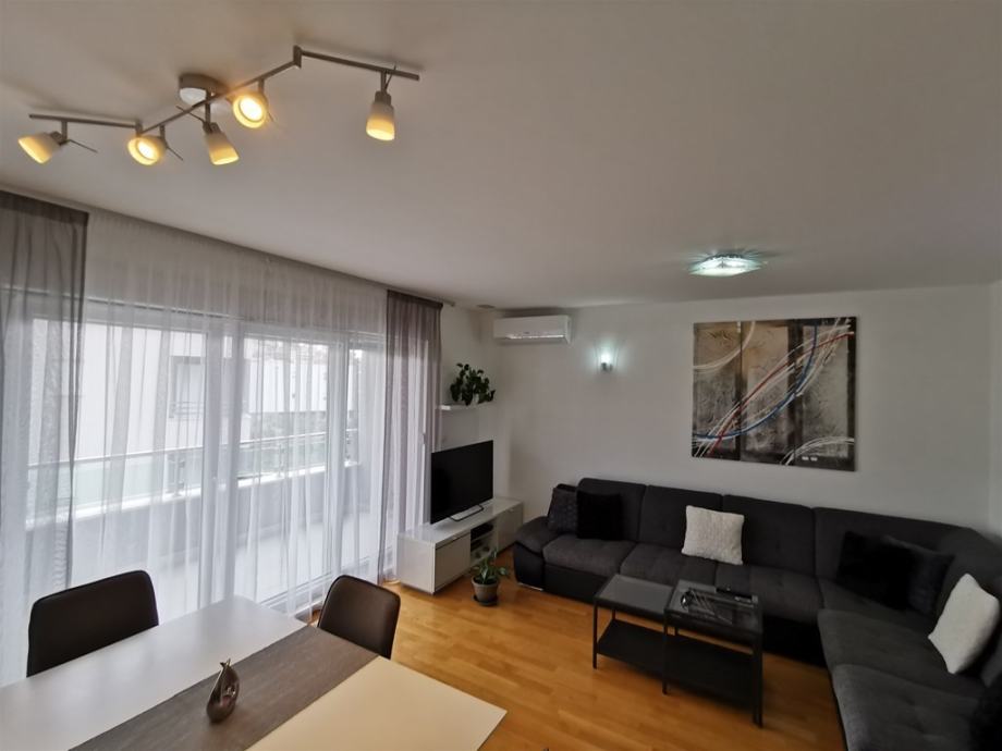 Prodaje se kompletno namješteni dvosobni stan površine 78 m2 (55m2 stamenog prostora + 10m2 loggia + 14m2 garaža).