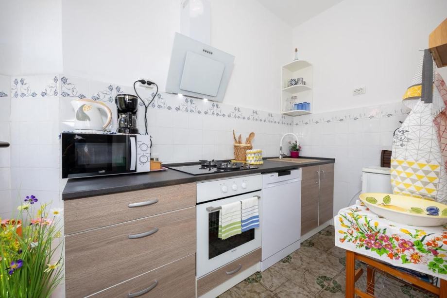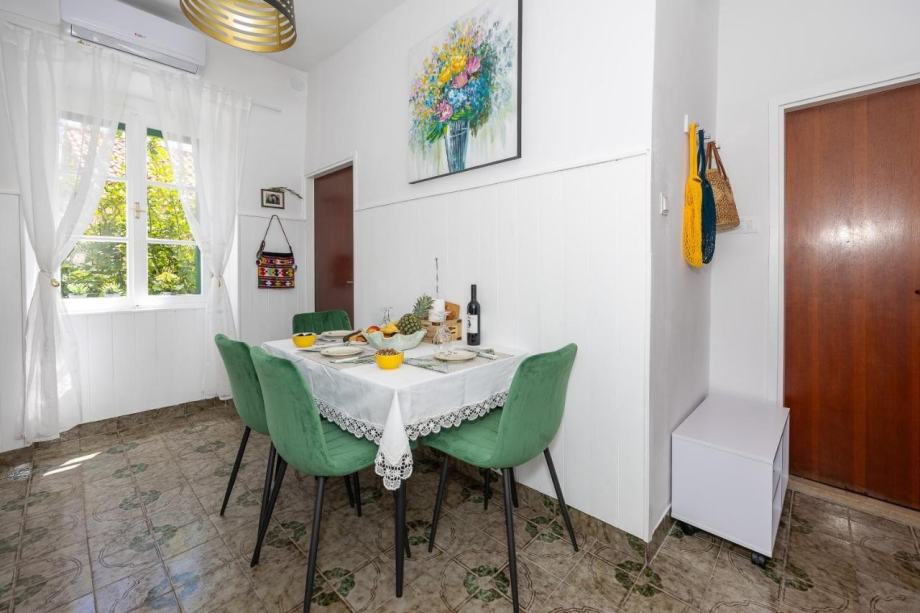 Ovaj stan smješten je na prvom katu stambene kamene zgrade, ukupne je stambene površine 55 m² i sastoji se od: